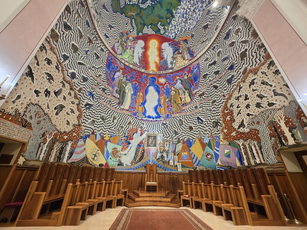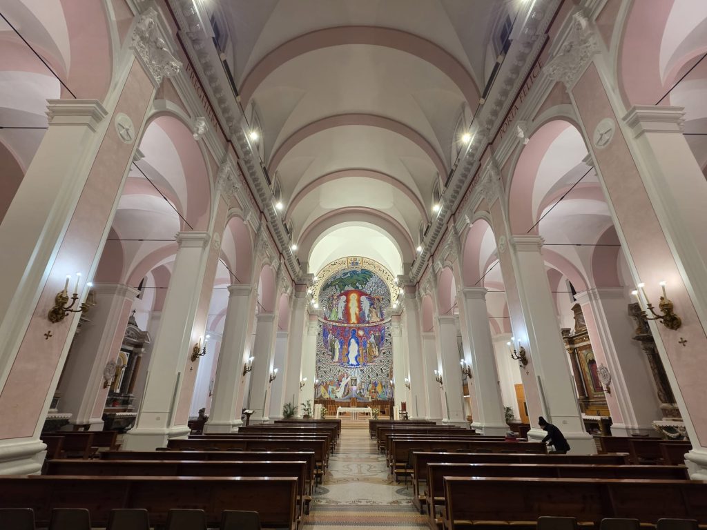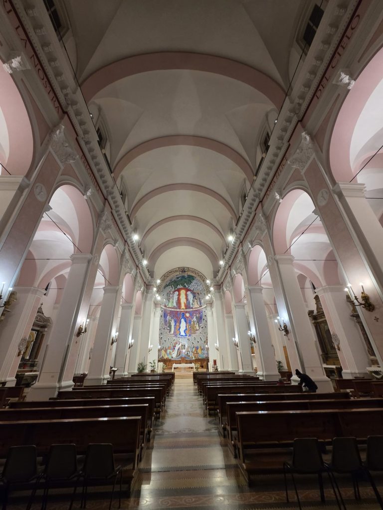 Infine c’è l’abside, dove ci sono Maria, i nostri Santi, Beati e Venerabili. È la Gerusalemme celeste che ci attende. Noi, nel tempo che ci è dato, viviamo la nostra vita, cominciando dal Battesimo, proseguendo nel cammino della nostra esistenza, passo dopo passo, per crescere sempre più intorno all’altare nella nostra identità di corpo di Cristo nel mondo e per poi un giorno, finalmente, partecipare alla Gerusalemme del Cielo.
