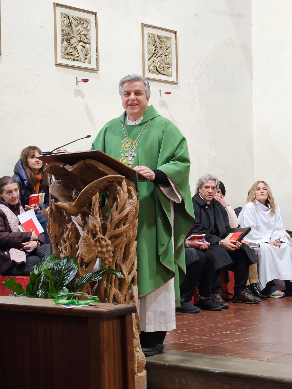 “Di solito viene utilizzato il Vangelo di Marco in preparazione di quegli adulti che si preparavano al Battesimo la notte di Pasqua, e ci sono dei capitoli dal 6 all’8, dove al centro c’è il Pane, inteso come Parola di Dio. Il Pane vero è Gesù ed è l’Eucaristia, affinché noi, Comunità, diventiamo il Sacramento di Dio in mezzo a noi. Dall’altra parte del lago c’erano popoli pagani, non ebrei. Il buon Pane della Parola di Gesù non è solo per i figli di Israele, ma per tutti. Siamo chiamati ad accogliere con gioia e il cuore adorante. Siete qui a celebrare l’Eucaristia, per ricevere ancora una volta il Dono di Dio. Davvero grande è questo Mistero, che non ci stanchiamo mai di accogliere, grazie”.