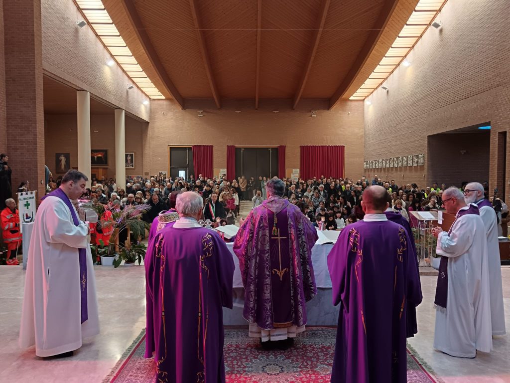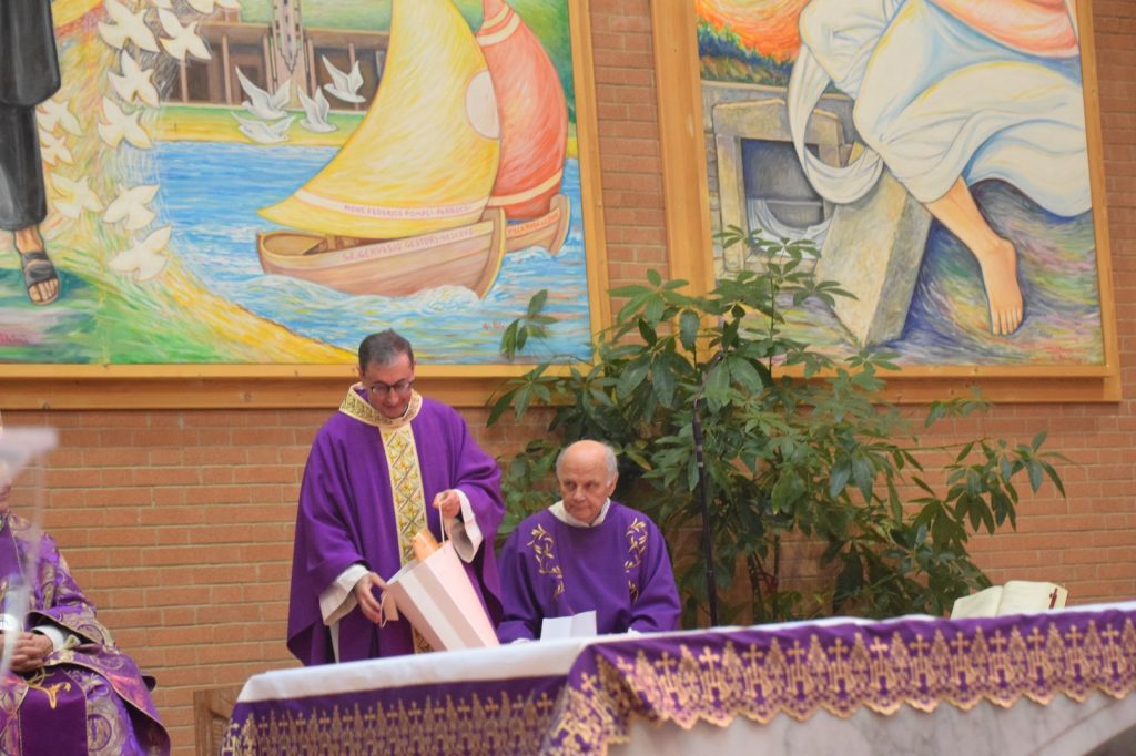 Poi voglio ricordare un vescovo santo, don Josè Luis Azcona, un vescovo brasiliano, che è stato la mia guida e il mio formatore, e i sacerdoti che si sono avvicendati in questa parrocchia: il fondatore don Antonio Vallorani, don Ulderico Ceroni, don Federico Pompei e don Alfonso Rosati. A quest’ultimo va il mio ringraziamento profondo, perché ha scelto di partecipare qui oggi a questa Messa. Credo con grande fatica. Lo ringrazio non solo per l’amicizia che abbiamo – siamo stati infatti compagni di classe -, ma anche per come ha condotto questa parrocchia fino ad oggi, per come ha saputo preparare questa celebrazione e per aver accettato il mio invito: è molto bello vedere questo passaggio di consegne. Grazie di cuore, don Alfonso!