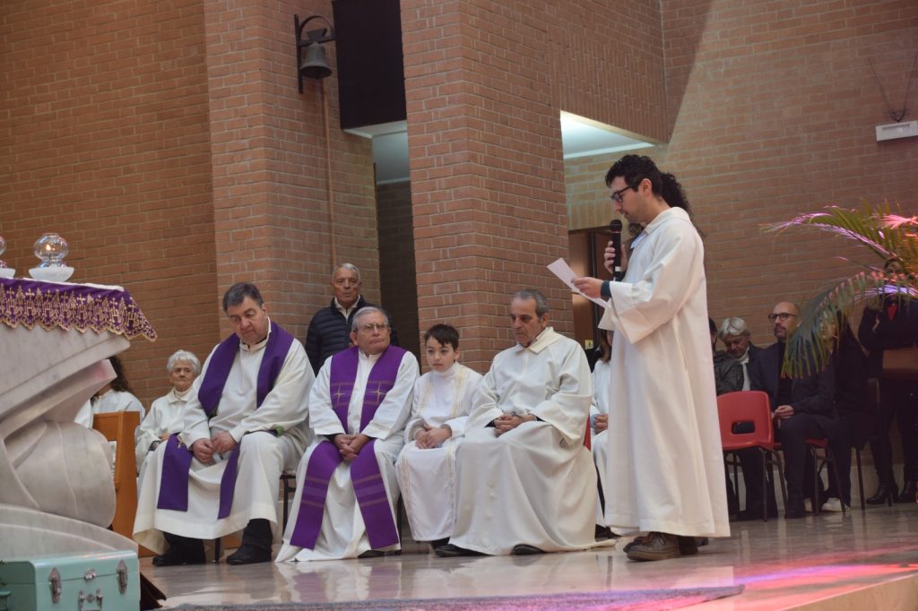 La celebrazione si è aperta con la lettura della Bolla di Nomina da parte del vicario foraneo don Anselmo Fulgenzi e con l’invocazione dello Spirito Santo sul nuovo parroco.