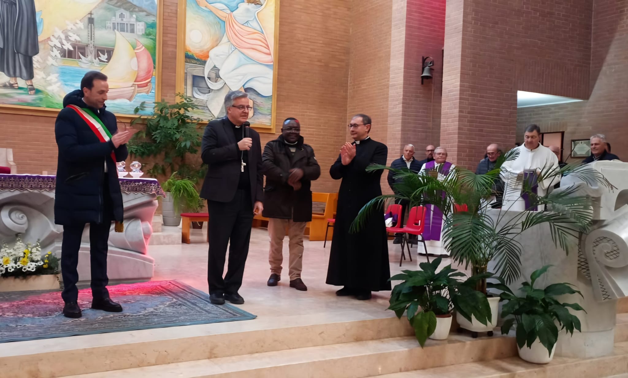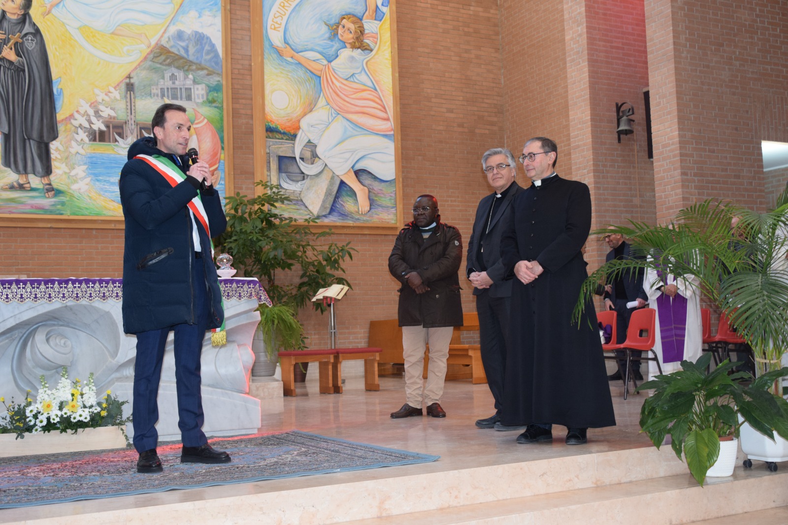 Una volta entrati in chiesa, il sindaco Vagnoni ha salutato calorosamente i due nuovi presbiteri a nome della comunità civile, offrendo loro fin da subito la sua collaborazione ed il suo impegno per il bene comune, il dialogo, il supporto alle fasce deboli e il rispetto delle tradizioni locali.