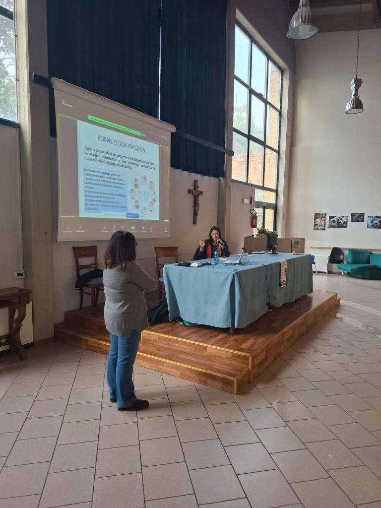 A concludere il pomeriggio è stata la dottoressa Tiziana Traini, che ha illustrato le procedure di base per l’assistenza alle persone con disabilità, dalla mobilizzazione del paziente allettato fino alle corrette pratiche di igiene durante le attività assistenziali.