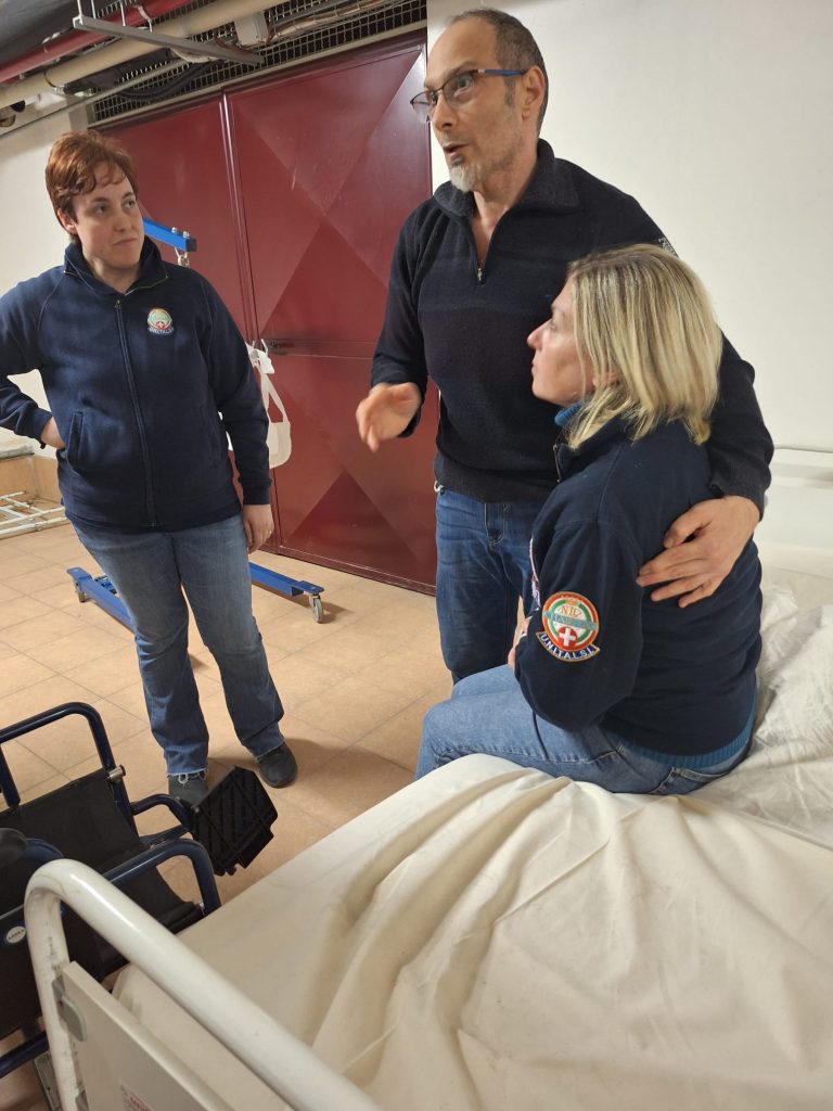 La formazione è poi proseguita sabato 28 febbraio, quando i contenuti teorici sono stati tradotti in esercitazioni pratiche attraverso simulazioni e attività di role playing. I discenti hanno collaborato attivamente nell’assistenza primaria a persone allettate, sperimentando le tecniche di mobilizzazione e le modalità di igiene con l’utilizzo appropriato dei dispositivi di protezione individuale.