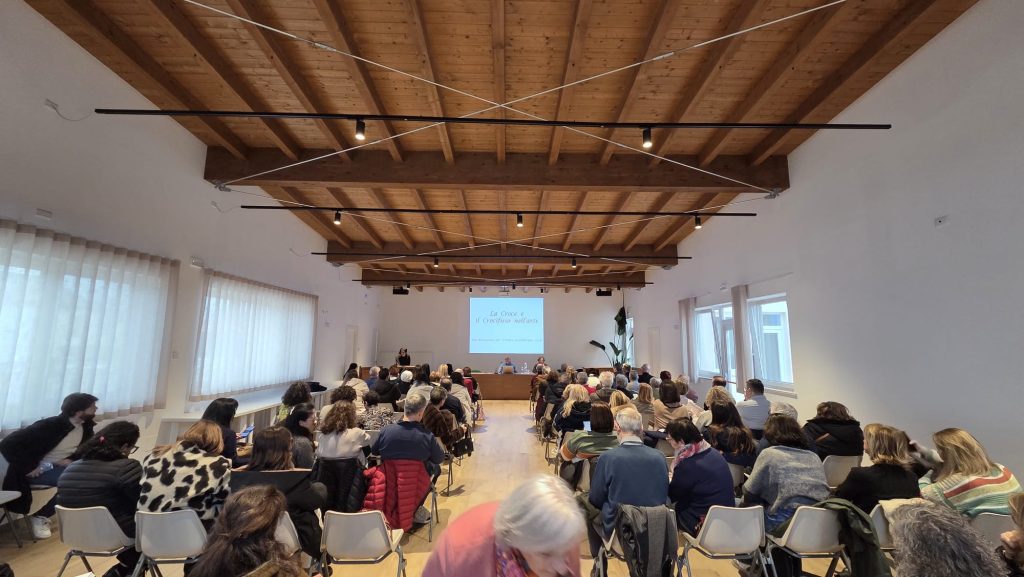 L’incontro si è aperto con due citazioni bibliche poste come chiave di lettura: il Servo sofferente descritto dal profeta Isaia – «uomo dei dolori… davanti al quale ci si copre la faccia» – e le parole del Vangelo di Giovanni: «Volgeranno lo sguardo a colui che hanno trafitto». Tra questi due estremi – lo scandalo che respinge e lo sguardo che salva – si è sviluppata l’intera riflessione.