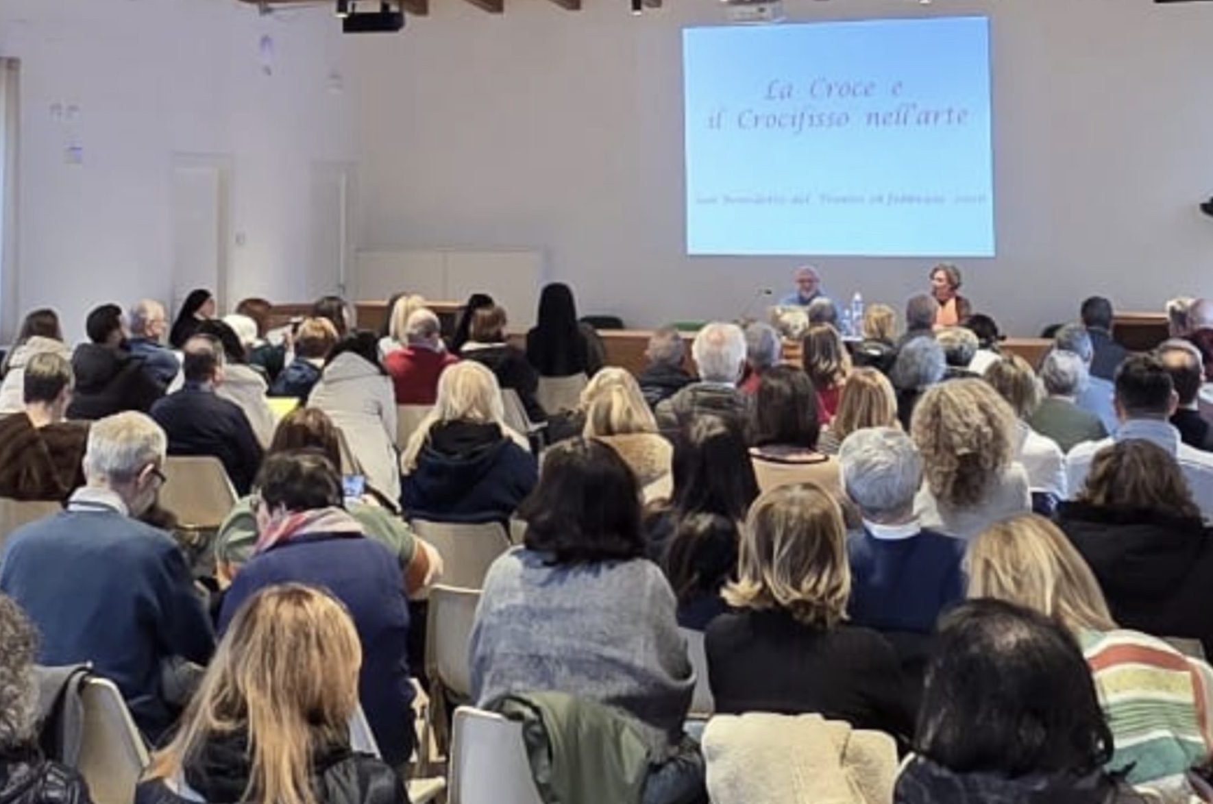 DIOCESI – Un pomeriggio di intensa partecipazione e riflessione ha segnato l’incontro promosso dal Servizio Apostolato Biblico diocesano sul tema della Croce e del crocifisso nell’arte cristiana. Numerosi i presenti nel salone del Monastero Santa Speranza delle Sorelle Clarisse di San Benedetto del Tronto, segno di un interesse vivo per un argomento che attraversa la fede, la storia e la cultura.