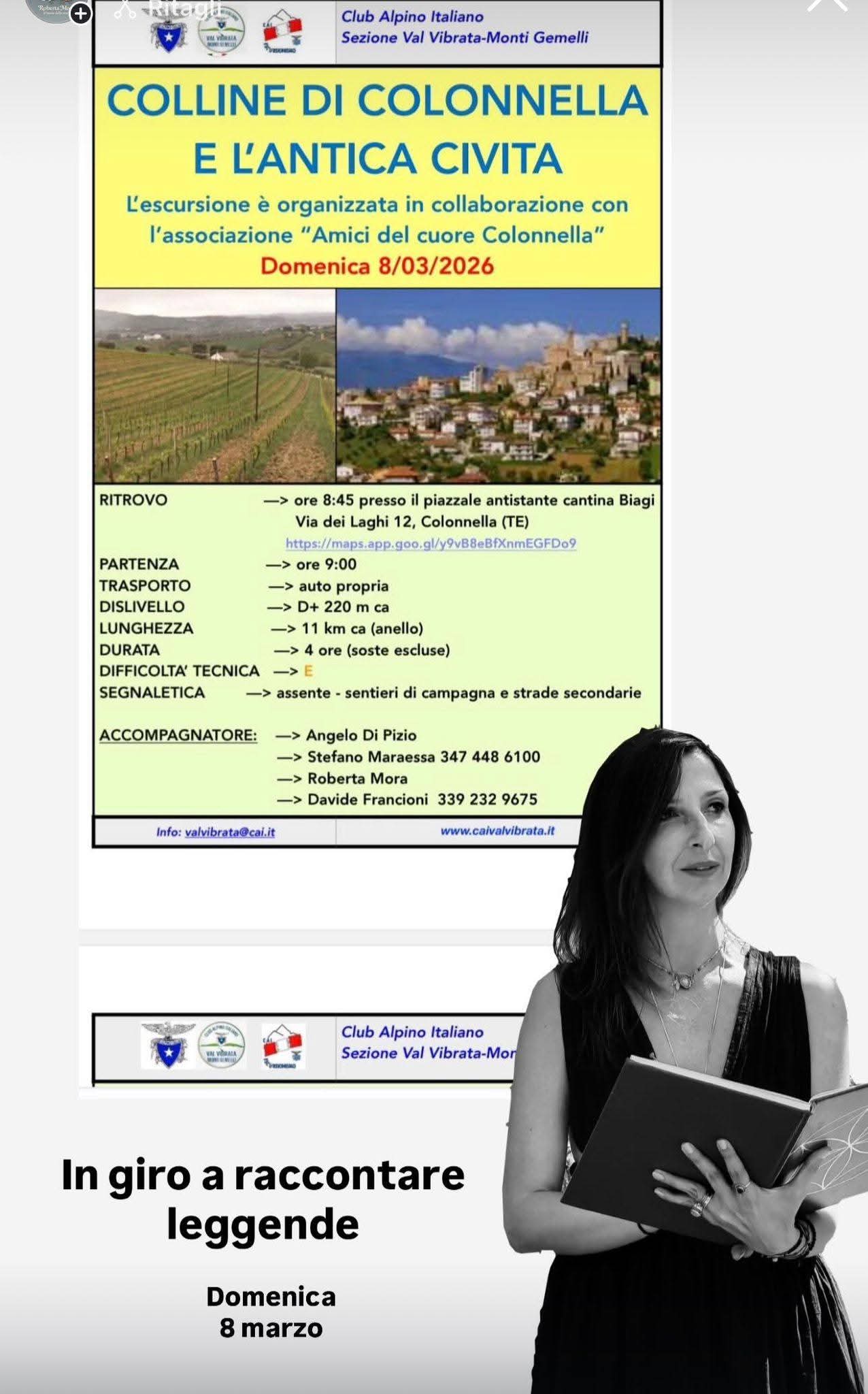 L’iniziativa, dal titolo “Colline di Colonnella e l’antica Civita – In giro a raccontare leggende” presenta il seguente programma: