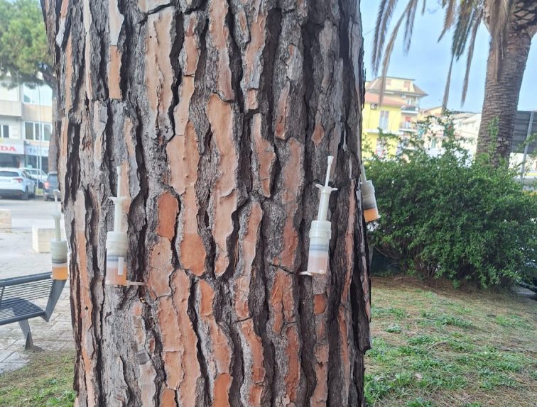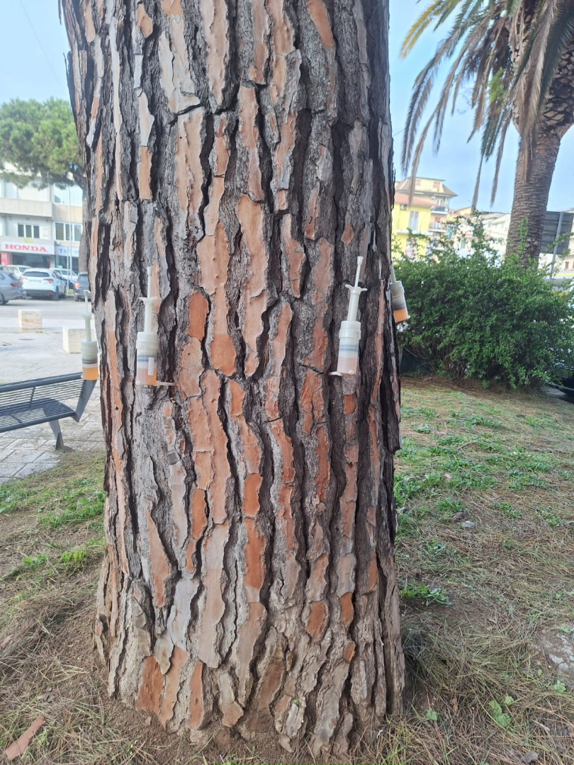 Il trattamento che viene eseguito si avvarrà della tecnica endoterapica: viene iniettato, attraverso fori sul tronco delle piante, un prodotto a base di Abamectina, fitofarmaco registrato presso il Ministero della Salute contro Toumeyella parvicornis e processionaria del pino. La tipologia di trattamento non consente dispersione in ambiente e ciò rappresenta una garanzia per la salute umana.