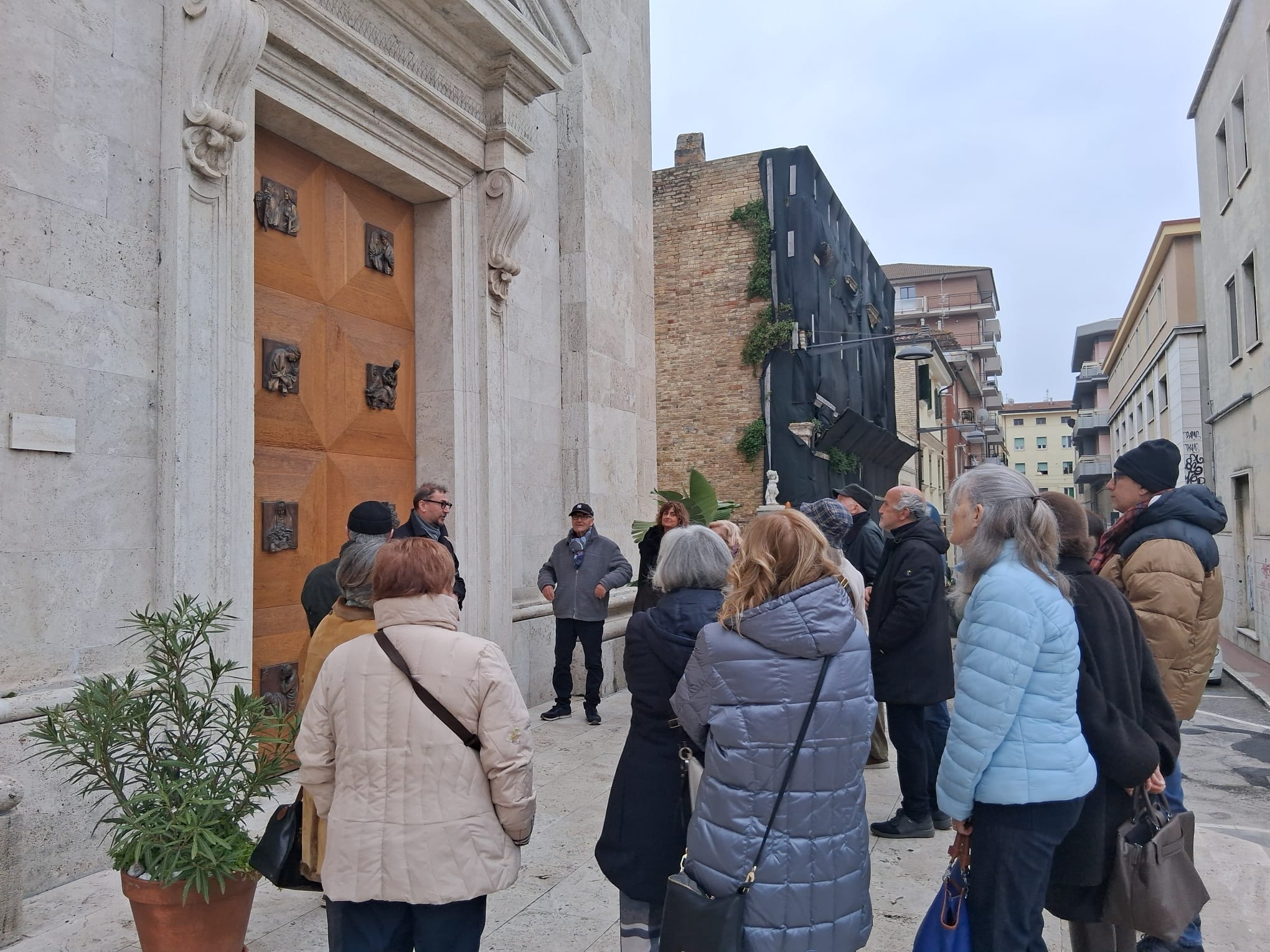 «Con questo spirito – conclude il Professore – visiteremo la chiesa che, per volere del committente don Francesco Sciocchetti ha un’incredibile somiglianza con la chiesa romana di San Giovanni dei Fiorentini. Ci concentreremo sulle cappelle e gli altari laterali seguendo un percorso tematico volto alla lettura iconografica e iconologica delle statue e dei dipinti di Cristo, della Madonna e dei Santi. Prima di visitare il Museo nel quale parleremo della storia dei santi Benedetto e Basso e dell’iconografia degli evangelisti, concluderemo la nostra visita davanti al monumento di Aldo Sergiacomi che celebra le due grandi figure senza le quali la chiesa semplicemente non esisterebbe: don Francesco Sciocchetti e suo fratello Luigi».