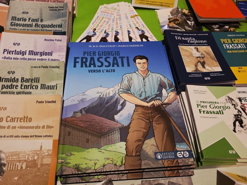 Oltre al vescovo Gianpiero Palmieri, erano presenti al momento inaugurale Mauro Alessandrini, presidente diocesano dell’Azione Cattolica di Ascoli Piceno, che ha introdotto la mostra e salutato i convenuti, Mara Mancini, che ha promosso le pubblicazioni della Casa Editrice Ave ed ha illustrato alcune opere dedicate a San Pier Giorgio Frassati, e Andrea Viozzi, che, in qualità di docente di Arte, ha proposto una lettura artistica della chiesa di Sant’Agostino, soffermandosi in particolare sul ritratto della Madonna della Pace.