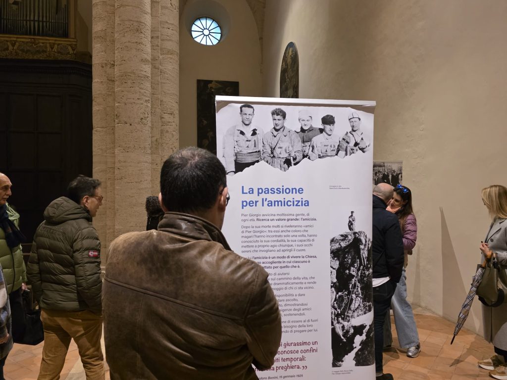 “Una mostra su San Pier Giorgio Frassati è bellissima, perché ci permette di esplorare il personaggio, i suoi scritti, i suoi pensieri, il suo mondo interiore, e di riportare il suo esempio nella nostra realtà. Ed è bellissimo che sia qui, in questa chiesa degli Agostiniani, per due motivi.