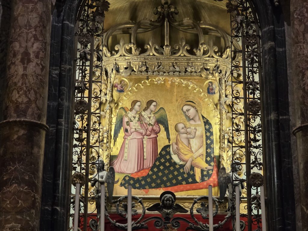 Ma in questa chiesa c’è anche l’immagine della Madonna della Pace, dove la comunità di Ascoli si raduna sempre, tutte le volte che vuole supplicare per il dono della pace. Sarebbe quindi molto bello unire la visita alla mostra di Pier Giorgio alla preghiera continua per la pace. In una situazione geopolitica molto complessa ne sentiamo profondamente il bisogno”.