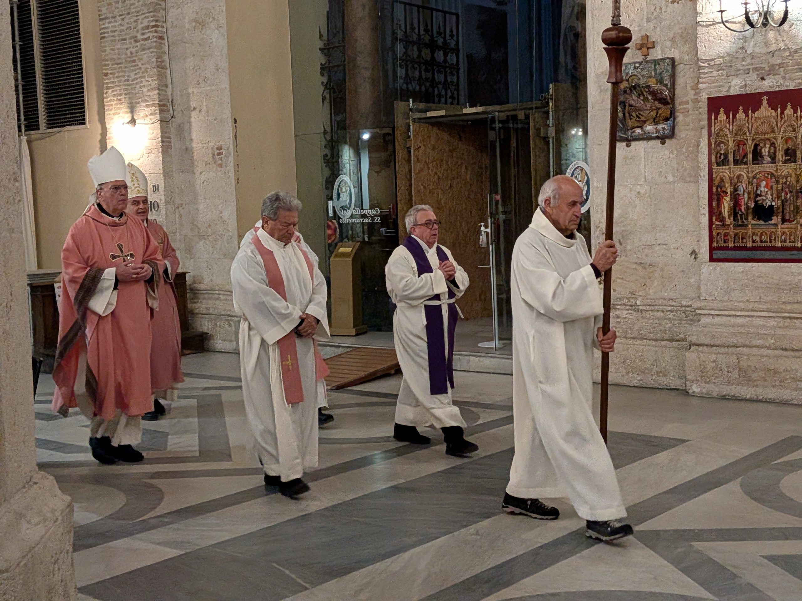 A presiedere la celebrazione il vescovo Gianpiero Palmieri, a concelebrare l’Arcivescovo emerito di Pesaro, Piero Coccia e don Luigi Nardi, parroco della Cattedrale di Ascoli Piceno, ed altri sacerdoti.