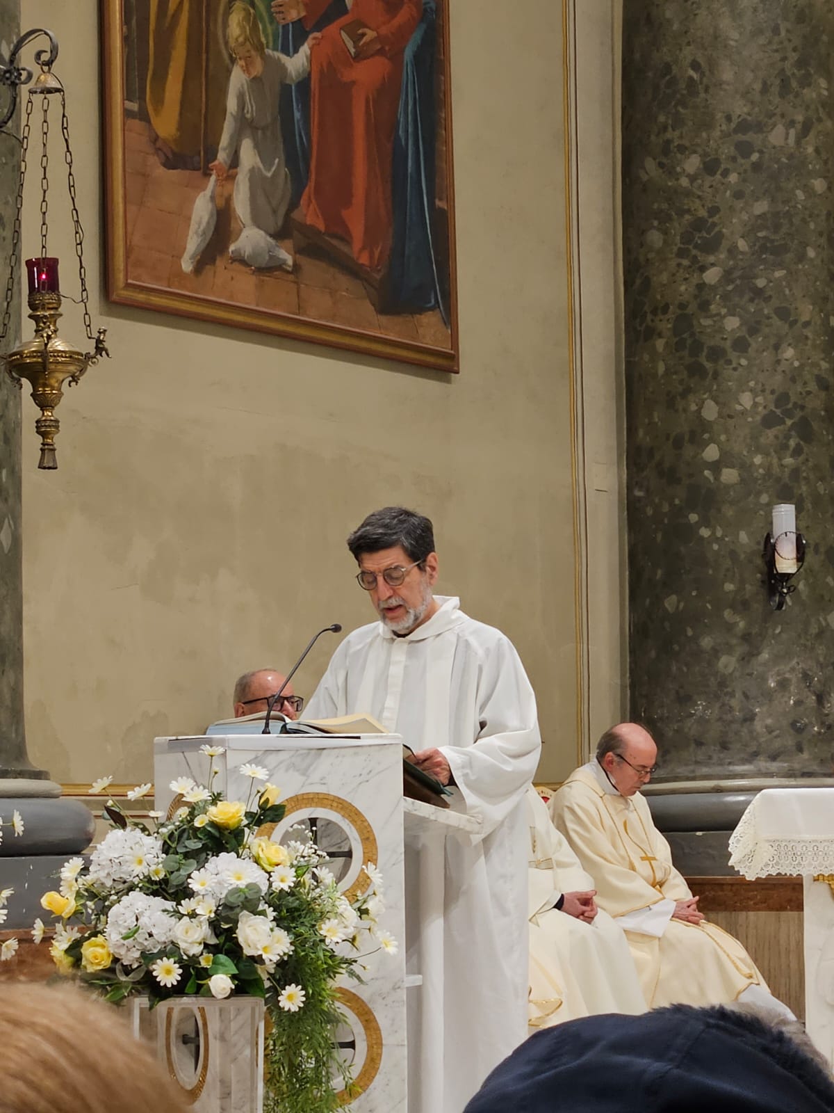 A fare gli onori di casa il parroco Padre Mario Amodeo; presenti gli altri Padri Sacramentini e Don Luigino Scarponi. IA prestare il proprio servizio all’altare il diacono Walter Gandolfi. La chiesa era gremita di fedeli, molti in piedi.
