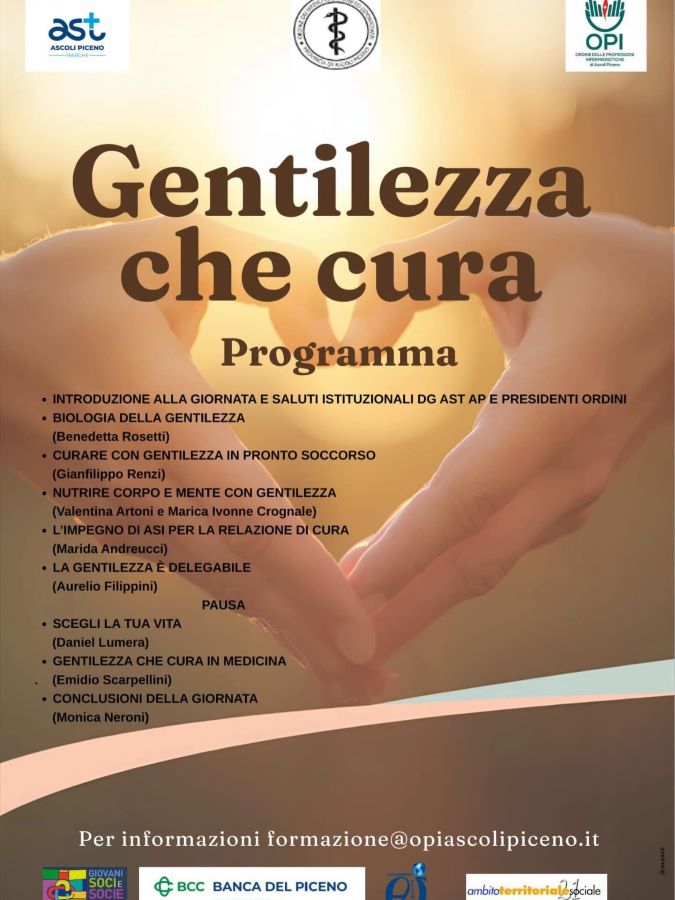 Il progetto nasce dalla sinergia tra Ast Ascoli Piceno, Ambito territoriale sociale 21, Accademia Scienze Infermieristiche, Ordine dei Medici Chirurghi e degli Odontoiatri della Provincia di Ascoli Piceno e Ordine delle Professioni Infermieristiche di Ascoli Piceno. Alla base, la convinzione condivisa che la qualità della relazione di cura rappresenti oggi una delle sfide più urgenti della sanità moderna.