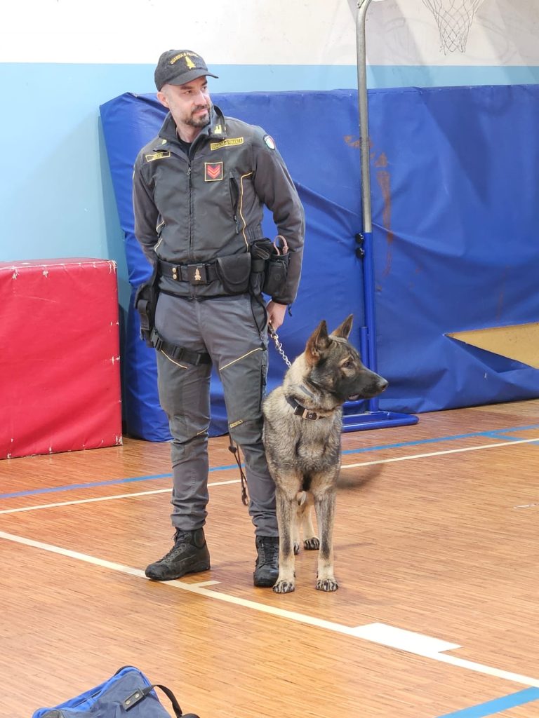 I ragazzi hanno dimostrato molto interesse all’incontro, che si è svolto nella palestra della scuola e, quando il cane ha ritrovato la droga nascosta in finti bagagli disposti come dimostrazione, lo hanno applaudito.
