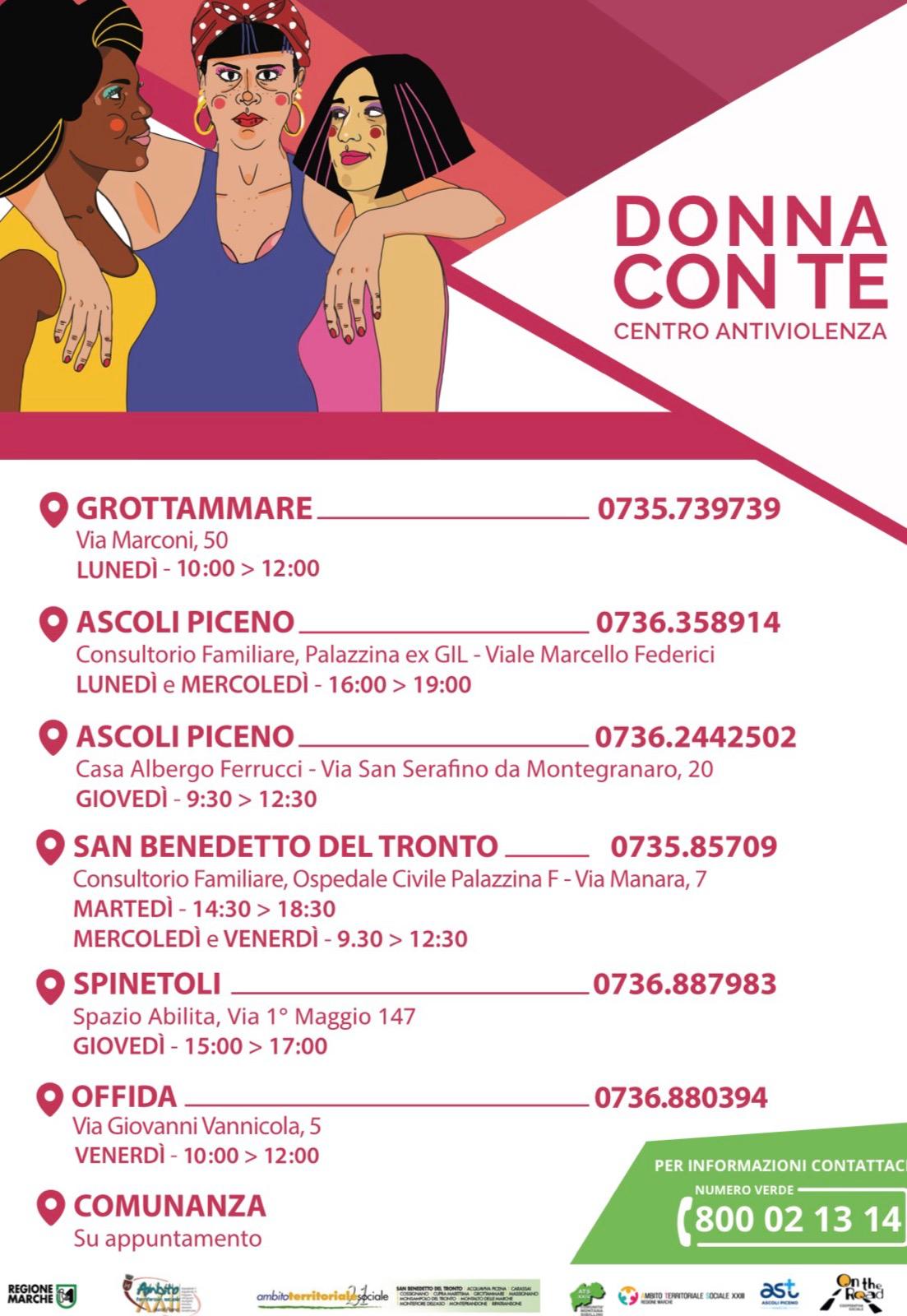 Oltre a questi numeri, è possibile recarsi personalmente presso alcuni centri presenti anche nel territorio del Piceno: