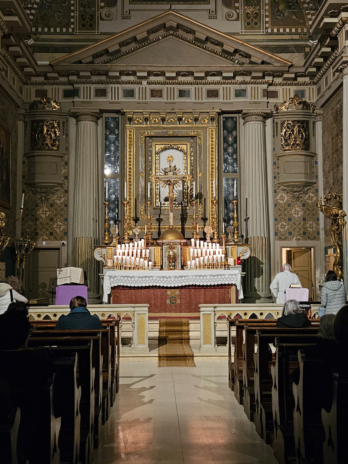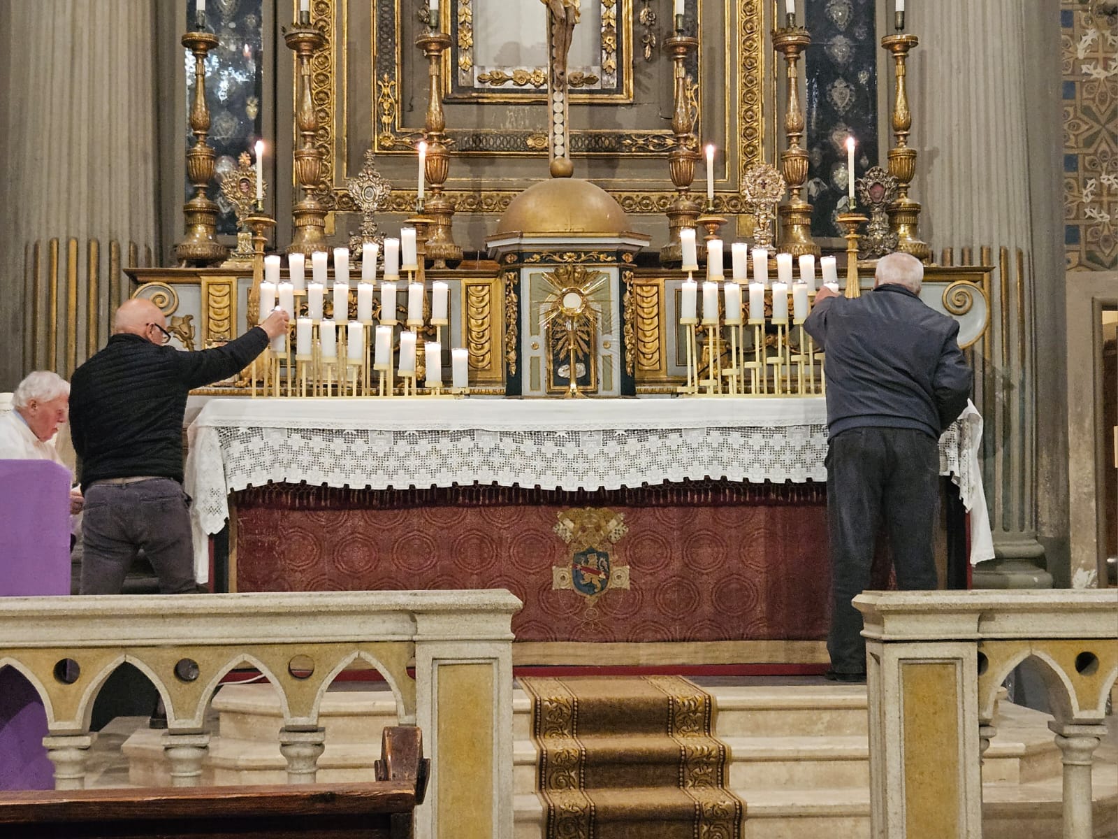 Ovunque silenzio: solo passi. Nella chiesa, a poco a poco, entrano le persone fino a riempirla. Il motivo è l’inizio dell’antica e tradizionale devozione delle Quarant’ore di adorazione al Santissimo, il lunedì dopo la Domenica delle Palme.