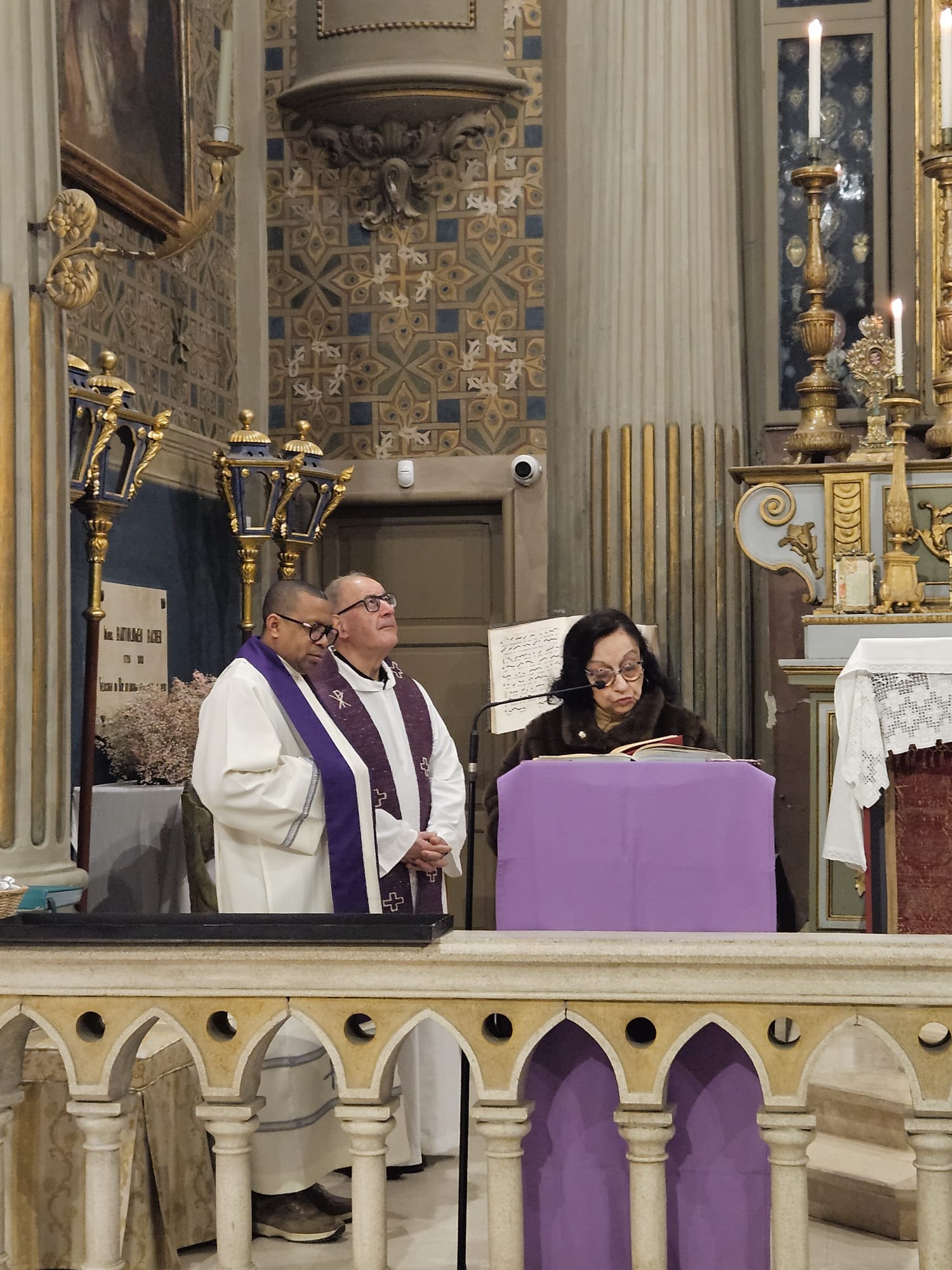 Si inizia con il Santo Rosario. Arriva l’arcivescovo Gianpiero Palmieri, delle diocesi di Ascoli Piceno e San Benedetto del Tronto – Ripatransone – Montalto. Sono presenti il parroco dell’Unità pastorale di San Pio V e San Giovanni Battista, don Roberto Traini, don Luigino Scarponi, don Pierluigi Bartolomei, parroco della Madonna della Speranza, e don Benvenuto Napou, collaboratore parrocchiale. Al servizio dell’altare prestano aiuto Vincenzo D’Ercoli e Alfredo Perotti.
