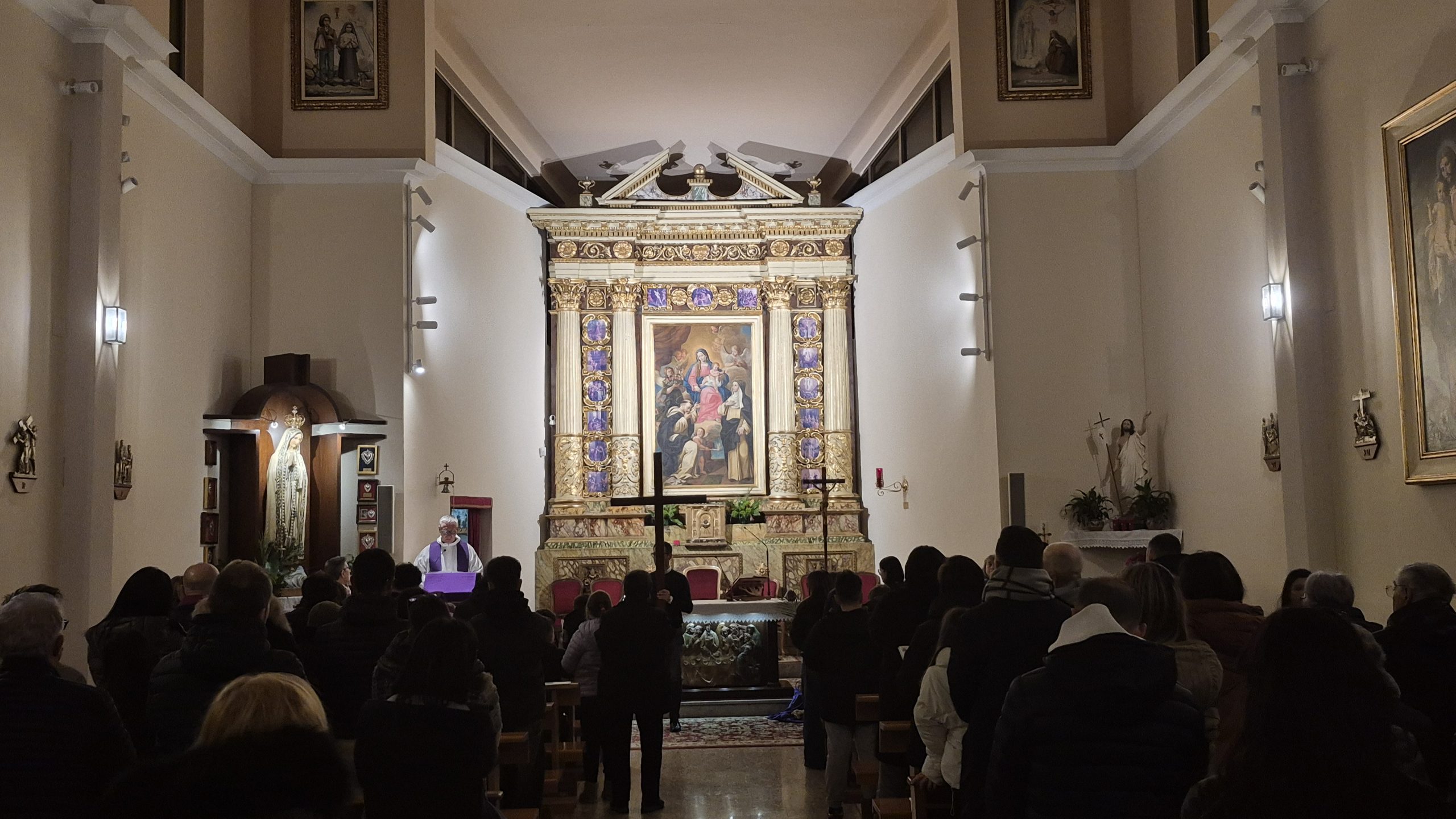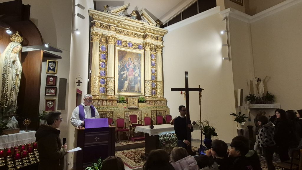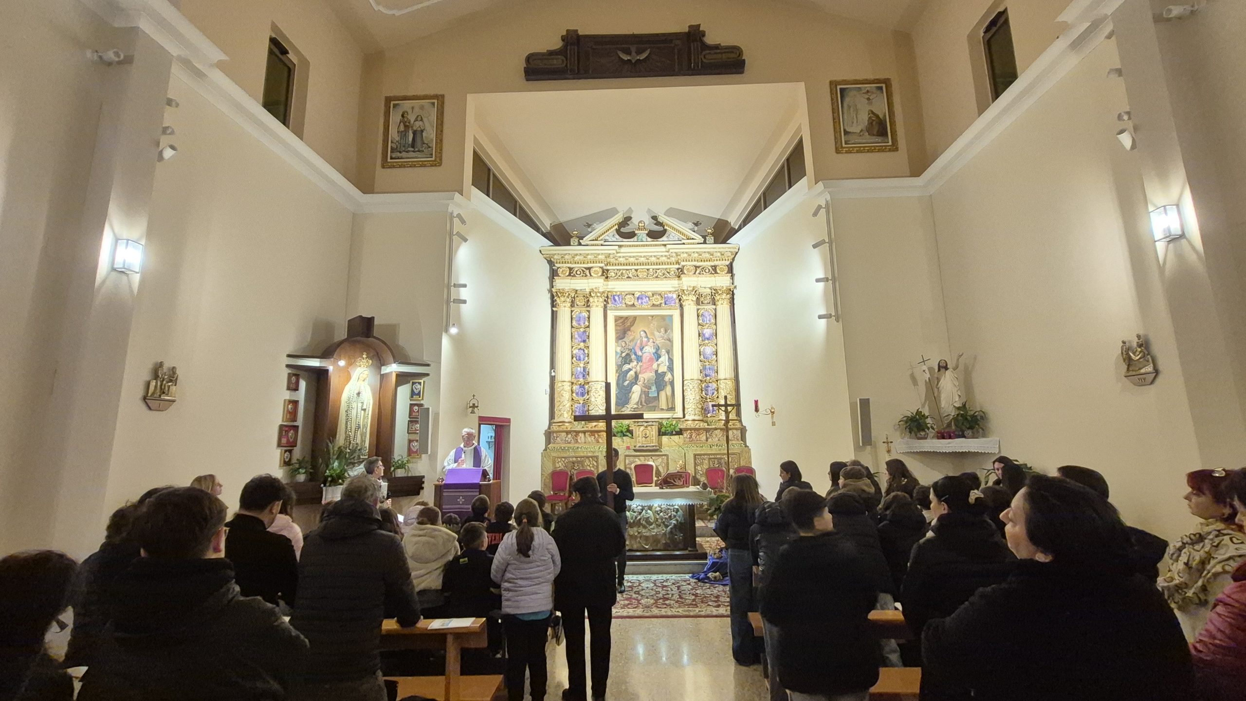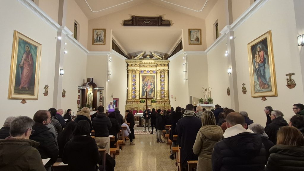 Nonostante il maltempo non abbia permesso di svolgerla, come da tradizione, nel Piazzale Parrocchiale “Madonna di Fatima”, la Comunità si è radunata in Chiesa creando comunque un clima profondo di preghiera, raccoglimento e autentica partecipazione.