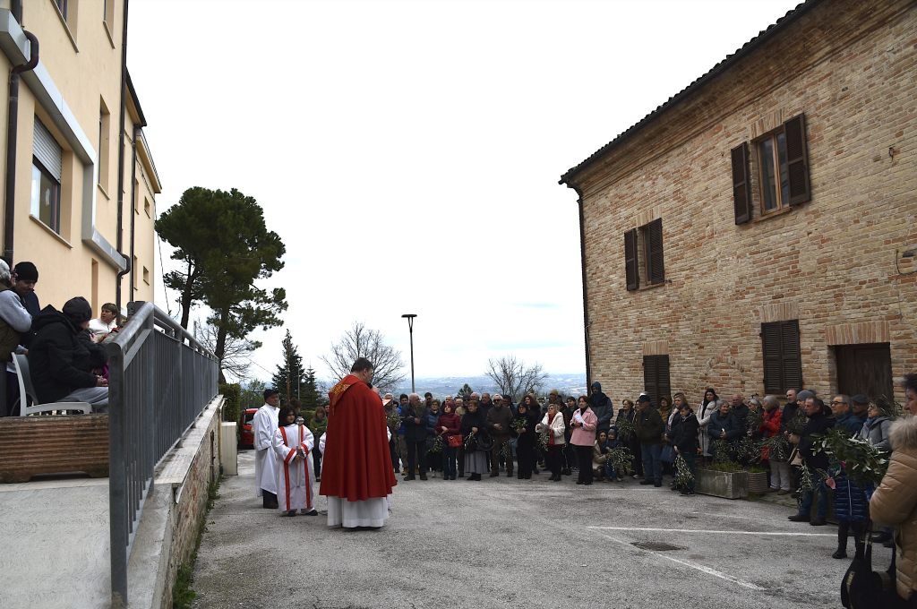 MONTELPARO – Grande partecipazione a Montelparo per la celebrazione della Domenica delle Palme. La cerimonia, guidata dal priore della parrocchia di San Michele Arcangelo, don Alfonso Rosati, ha visto numerosi fedeli riunirsi davanti all’Istituto Mancinelli, molti dei quali con tradizionali rami d’ulivo.