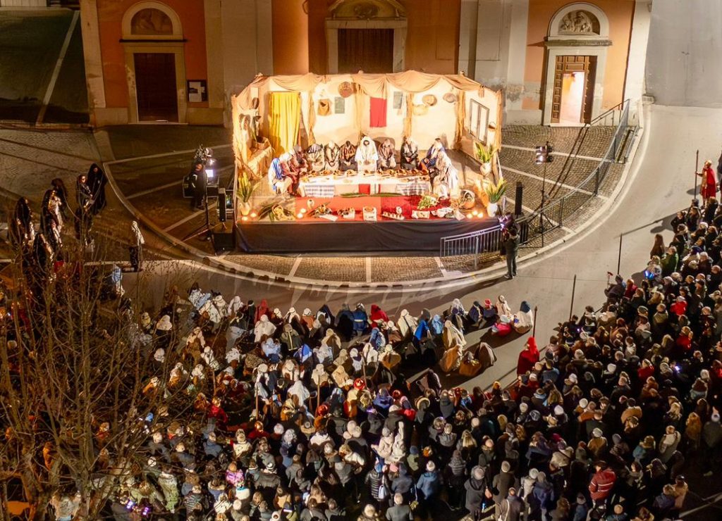 La suggestiva narrazione, che ha coinvolto oltre 120 figuranti, ha proposto 19 scene riguardanti gli ultimi momenti più significativi della vita di Gesù, come la resurrezione di Lazzaro, l’entrata trionfante a Gerusalemme, l’ultima cena, il momento di preghiera nell’Orto degli Ulivi, l’ incontro con Ponzio Pilato, la dolorosa salita al Golgota, la crocifissione e la Resurrezione di Gesù.