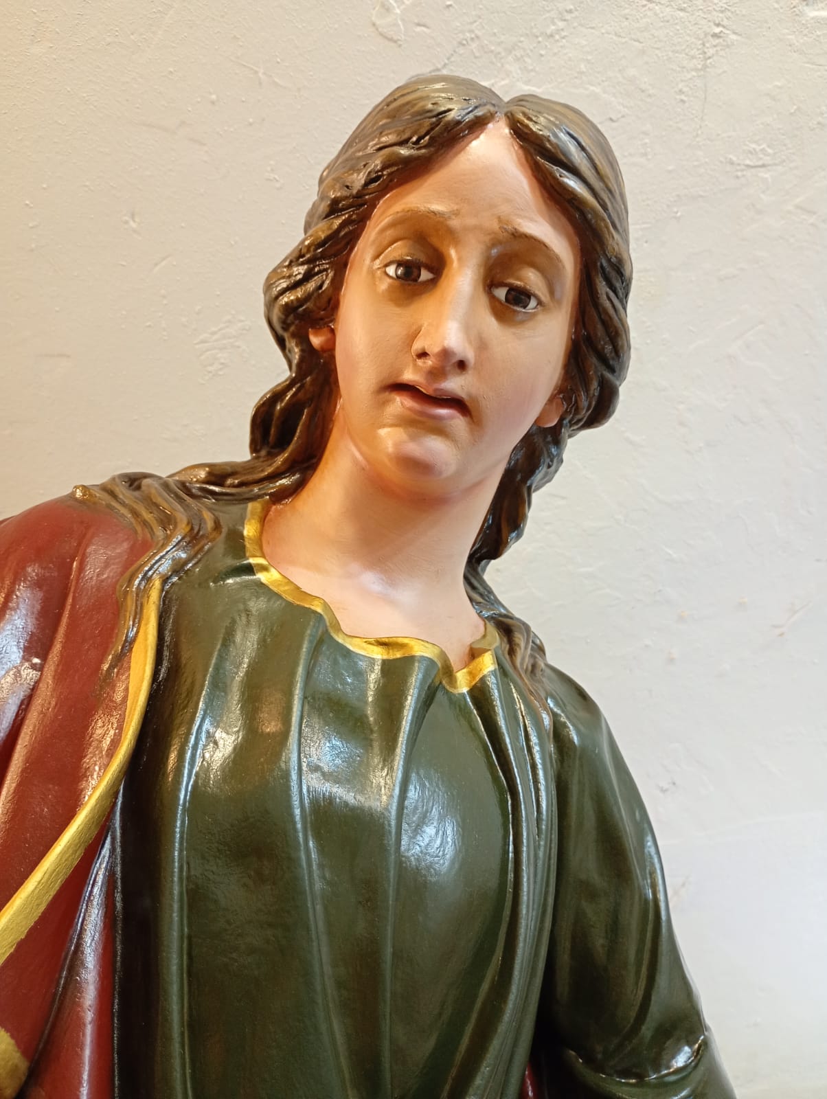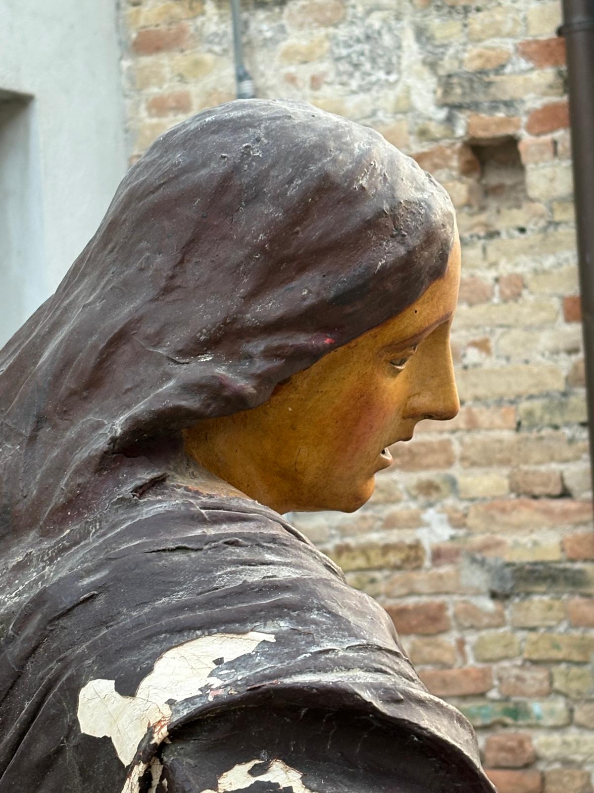 Le altre sono in migliori condizioni rispetto alla fragilità di quella della Maddalena. Questa nuova, realizzata dal maestro Claudio Riso della ditta artigianale: “ Cartapesta – Riso” di Lecce, pesa solo Kg. 60 e raffigura, anche nei colori, la statua originaria, che è tutelata dalla Soprintendenza ai Beni e Artistici e Storici per le Marche.
