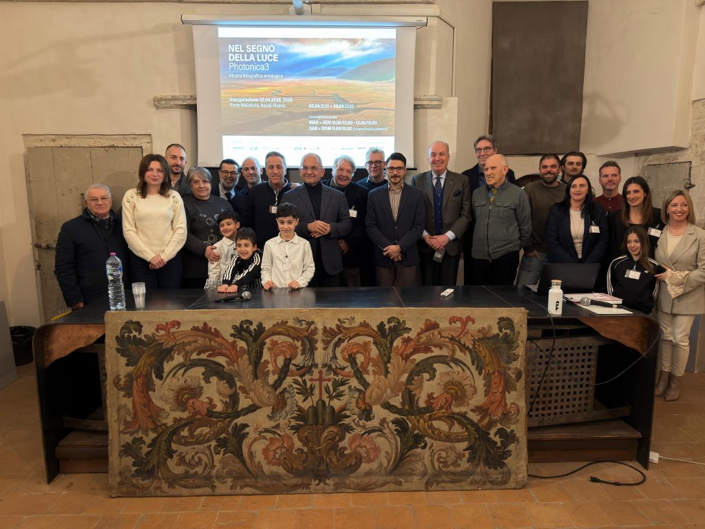 Contestualmente è stato presentato anche il volume fotografico legato al progetto: una raccolta che riunisce gli scatti più rappresentativi del collettivo, frutto di una selezione complessa realizzata su circa mezzo milione di fotografie. Il titolo della mostra e del libro racchiude un significato doppio: la luce come elemento essenziale della fotografia e, allo stesso tempo, come dimensione spirituale e affettiva. La mostra è infatti dedicata alla memoria di Lorenzo Lambertucci, componente del gruppo scomparso prematuramente, autore di molte immagini esposte e della fotografia scelta per la copertina del libro e dell’esposizione. L’assessore alla Cultura del Comune di Ascoli Piceno, Donatella Ferretti, ha sottolineato il valore di questa presenza in città: «Siamo felici di accogliere un collettivo che arriva dalle aree interne, troppo spesso trascurate. Ringrazio il commissario Castelli per l’attenzione non solo alla ricostruzione materiale, ma anche alla riparazione del tessuto sociale e del senso di comunità». Il direttore dei Musei Civici di Ascoli Piceno, Stefano Papetti, ha evidenziato la qualità artistica degli scatti: «Queste non sono semplici immagini di paesaggio. C’è competenza tecnica, ma soprattutto sensibilità. Giacomo Leopardi sosteneva che quando vediamo il ritratto di una persona o di un luogo che conosciamo siamo più impressionati a vederne la riproduzione che la presenza, perché emerge la sensibilità di chi ha riprodotto quel ritratto. Ecco, questo è un modo molto interessante di vedere le fotografie di Photonica3 che raccontano luoghi che conosciamo e che portano la luce non della fotografia, ma della loro interiorità attraverso la fotografia».