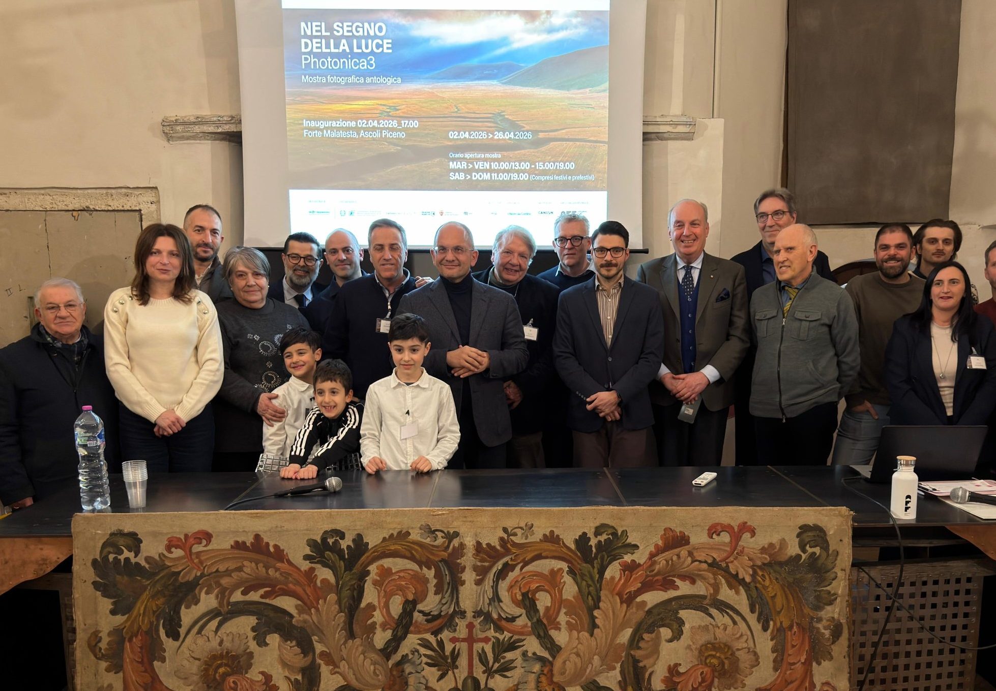 Contestualmente è stato presentato anche il volume fotografico legato al progetto: una raccolta che riunisce gli scatti più rappresentativi del collettivo, frutto di una selezione complessa realizzata su circa mezzo milione di fotografie. Il titolo della mostra e del libro racchiude un significato doppio: la luce come elemento essenziale della fotografia e, allo stesso tempo, come dimensione spirituale e affettiva. La mostra è infatti dedicata alla memoria di Lorenzo Lambertucci, componente del gruppo scomparso prematuramente, autore di molte immagini esposte e della fotografia scelta per la copertina del libro e dell’esposizione. L’assessore alla Cultura del Comune di Ascoli Piceno, Donatella Ferretti, ha sottolineato il valore di questa presenza in città: «Siamo felici di accogliere un collettivo che arriva dalle aree interne, troppo spesso trascurate. Ringrazio il commissario Castelli per l’attenzione non solo alla ricostruzione materiale, ma anche alla riparazione del tessuto sociale e del senso di comunità». Il direttore dei Musei Civici di Ascoli Piceno, Stefano Papetti, ha evidenziato la qualità artistica degli scatti: «Queste non sono semplici immagini di paesaggio. C’è competenza tecnica, ma soprattutto sensibilità. Giacomo Leopardi sosteneva che quando vediamo il ritratto di una persona o di un luogo che conosciamo siamo più impressionati a vederne la riproduzione che la presenza, perché emerge la sensibilità di chi ha riprodotto quel ritratto. Ecco, questo è un modo molto interessante di vedere le fotografie di Photonica3 che raccontano luoghi che conosciamo e che portano la luce non della fotografia, ma della loro interiorità attraverso la fotografia».