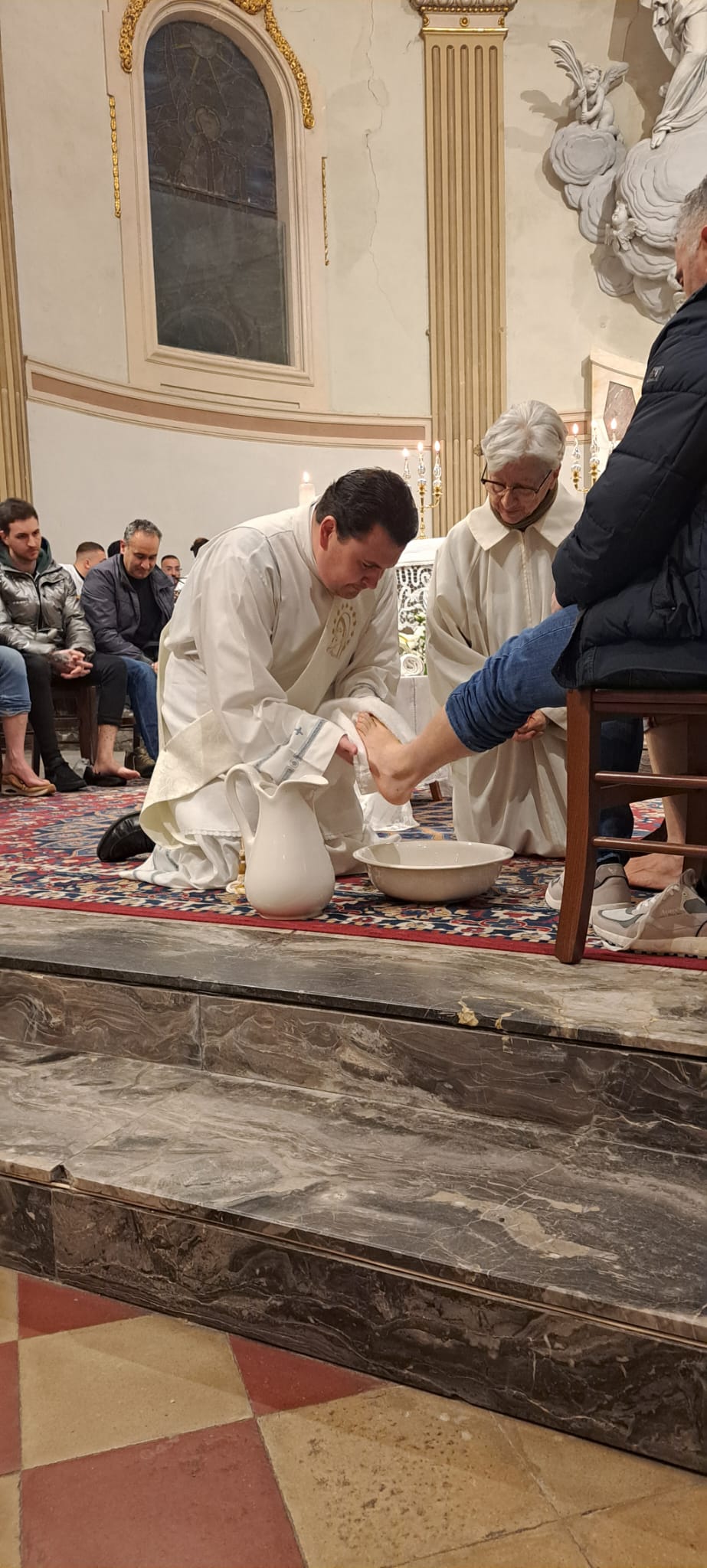 Momento particolarmente toccante è stato il rito della lavanda dei piedi, durante il quale dodici padri di bambini che riceveranno la Prima Comunione il prossimo 17 maggio hanno preso parte al gesto simbolico, segno di servizio e umiltà.