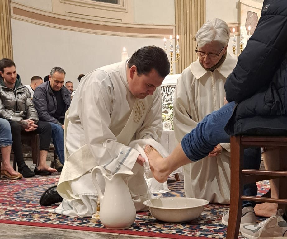 Momento particolarmente toccante è stato il rito della lavanda dei piedi, durante il quale dodici padri di bambini che riceveranno la Prima Comunione il prossimo 17 maggio hanno preso parte al gesto simbolico, segno di servizio e umiltà.