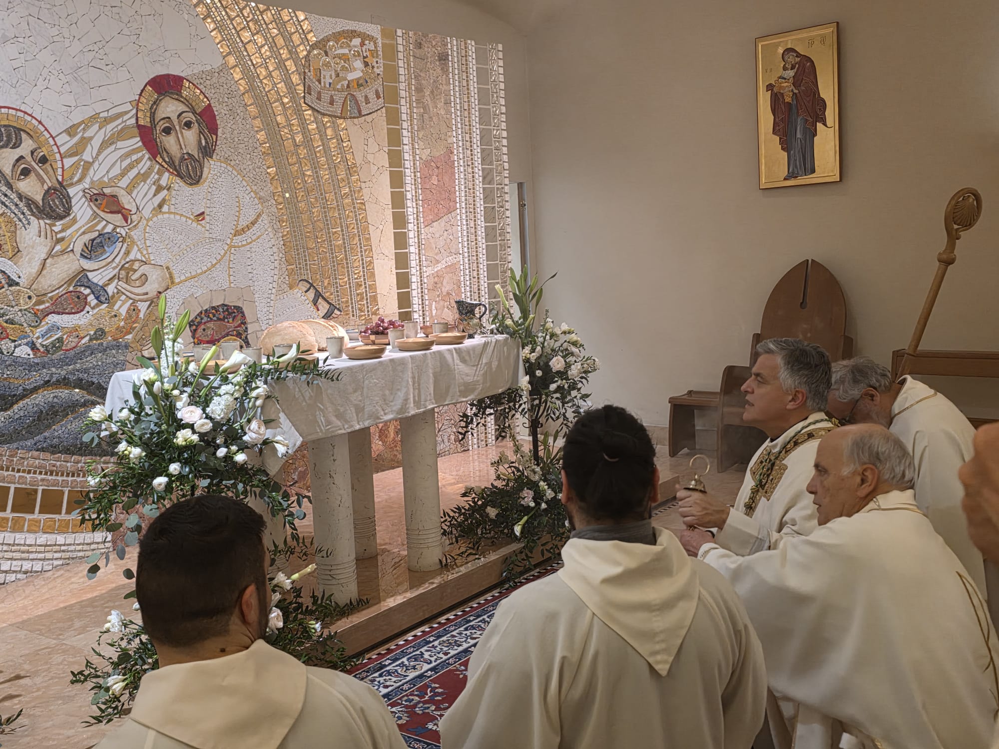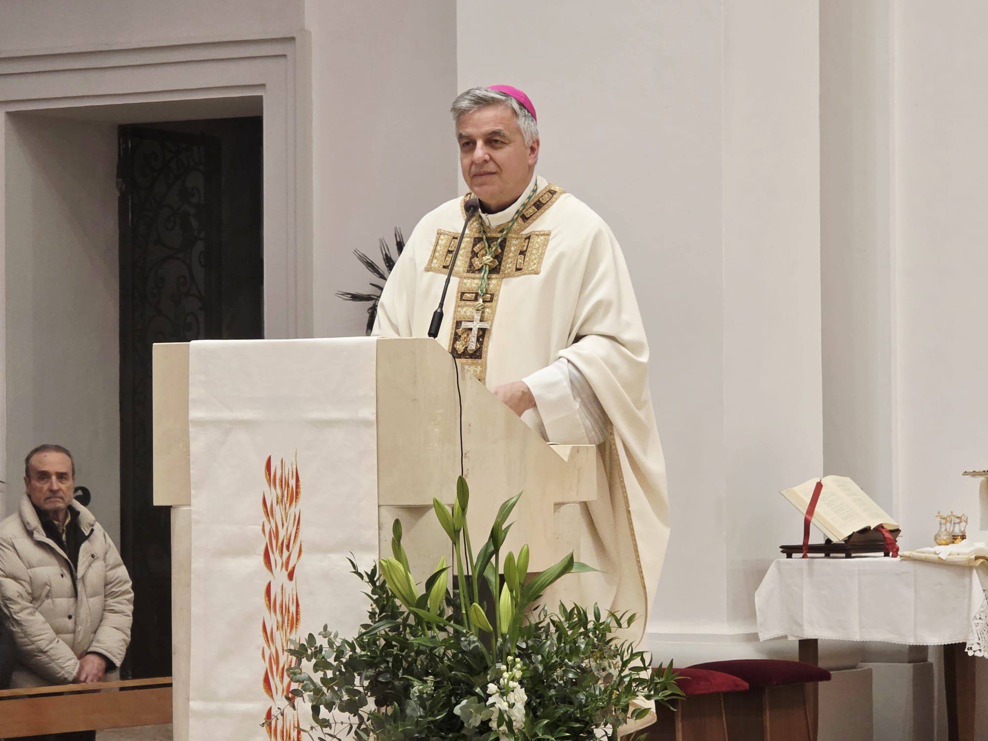 Dopo le letture, prende la parola il vescovo per l’omelia: «L’Ultima Cena è un’idea geniale di Gesù per creare il memoriale della sua Pasqua e farci partecipare a questa. Tale evento ha segnato la Chiesa sin dal principio; pertanto, la prima comunità cristiana già da subito si riuniva la domenica a celebrare l’Eucarestia in modo tale che si potesse vivere il memoriale della Pasqua di Gesù.