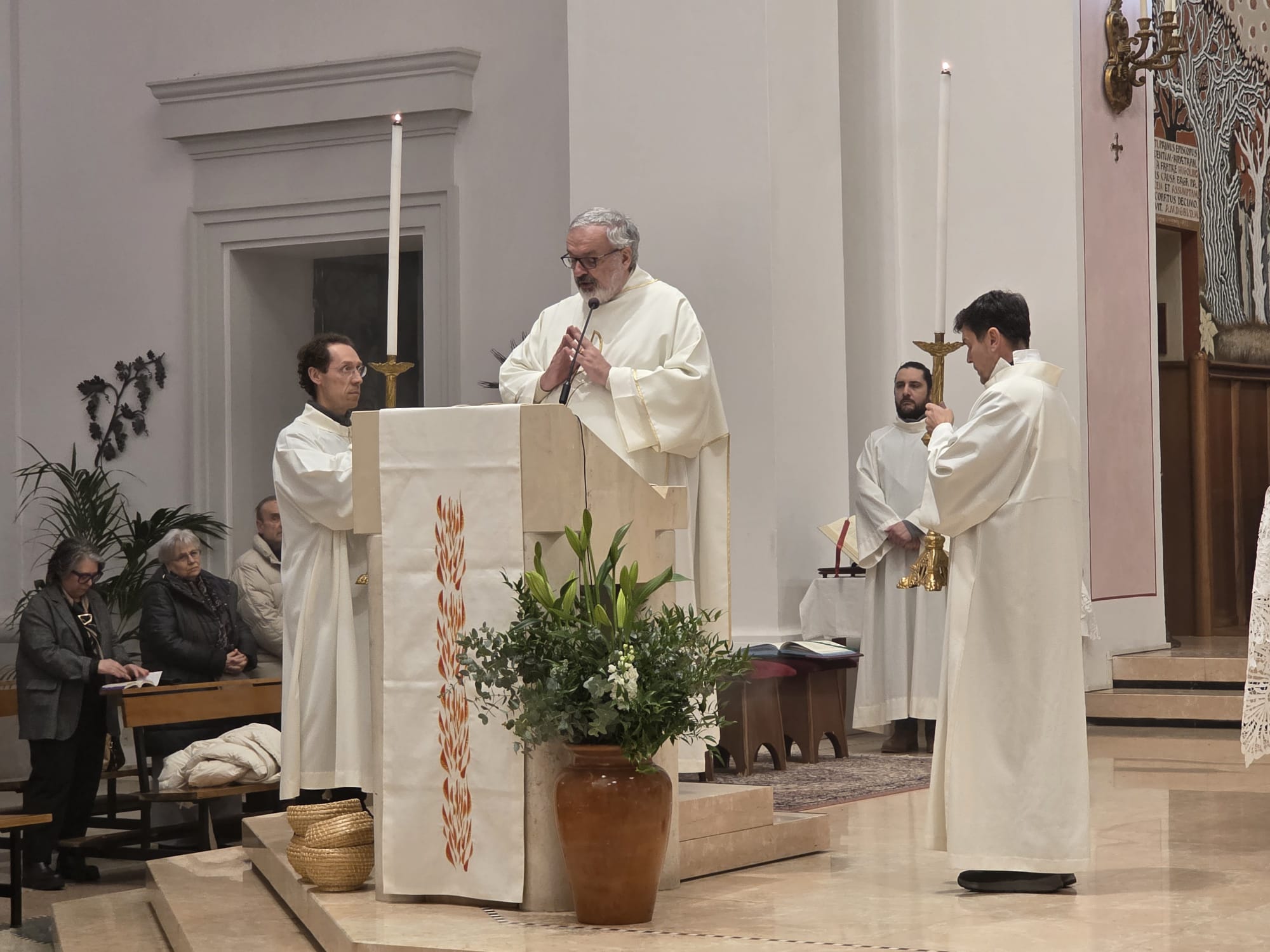 Tra poco vivremo l’offertorio dove, spesso distratti dal mettere i soldi, dimentichiamo che, in quel momento, prendiamo il pane ed il vino, che simboleggiano la nostra vita, e li offriamo a Dio. Quello che farà il Signore è prendere la nostra vita e farci diventare un solo corpo con lui. Il Signore ama la nostra vita, pur essendo piena di fragilità, l’ambisce veramente; dunque, ci offriamo al Signore Risorto, il quale ci prende e ci rende capaci di offrire la nostra vita a Lui, al Padre ed ai Fratelli. Tale procedimento accade quando, alla fine della messa, andiamo in pace, fuori da qui, pronti a svolgere la nostra missione quotidiana di amore e aiuto verso il prossimo; insomma, facciamo della nostra vita un Eucarestia.