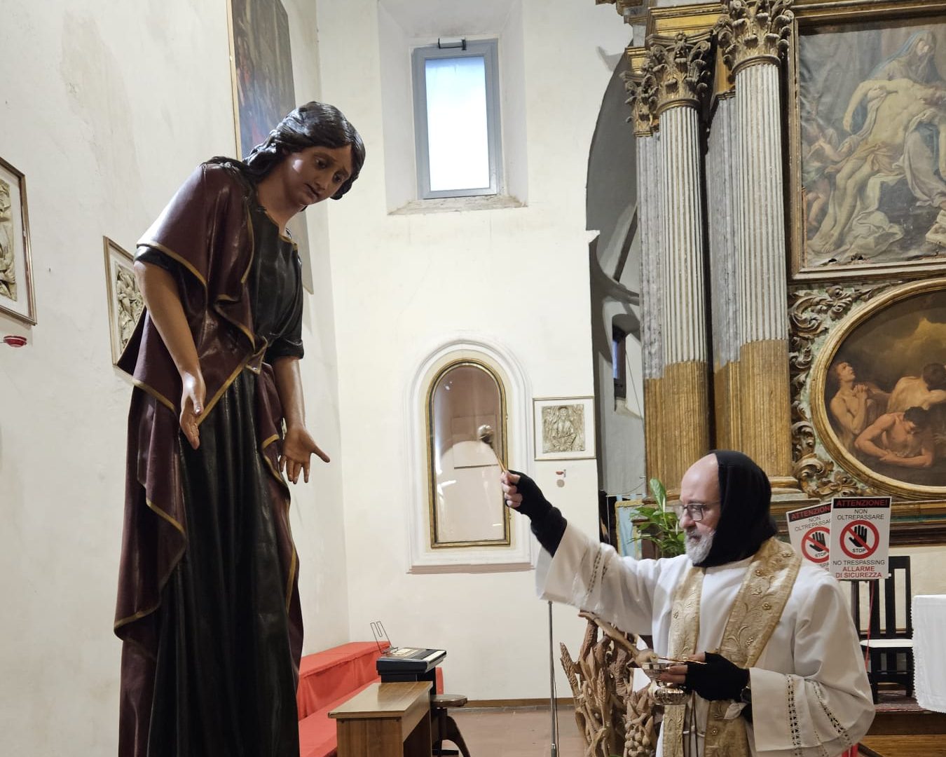 A benedire la nuova statua, che la Confraternita dell’Addolorata ha fatto realizzare per preservare quella antica, è stato Don Giorgio Carini. L’antica statua originale è molto fragile e pertanto la Confraternita ne ha fatto realizzare una copia, ma una copia artistica e artigianale anch’essa, di valore e pregio nella sua unicità.