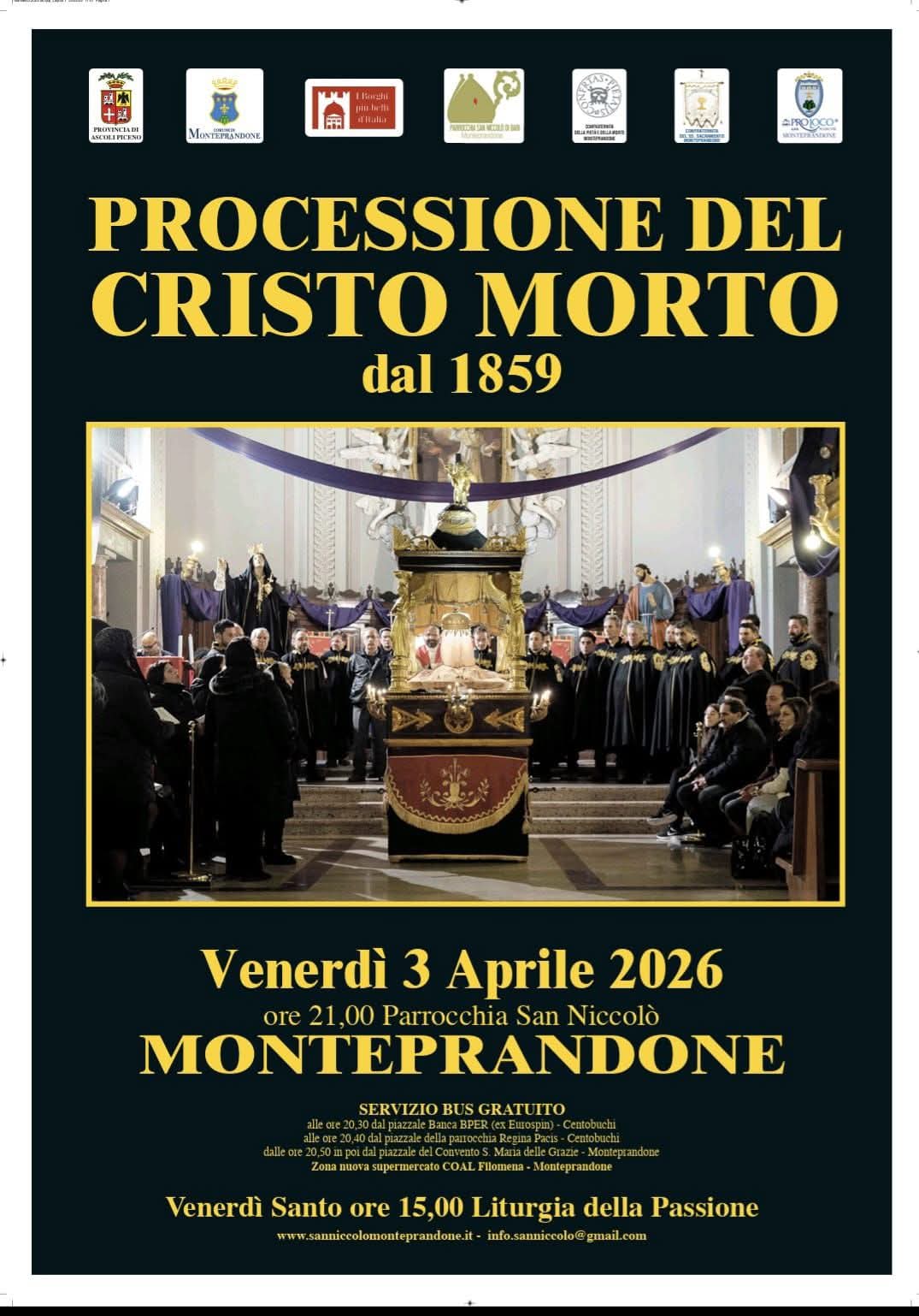 MONTEPRANDONE – La storica Processione del Cristo Morto della Parrocchia di S. Nicolò di Bari di Monteprandone ha ottenuto un importante riconoscimento: la nota Associazione Borghi più belli d’Italia nelle Marche ha individuato nel territorio regionale cinque storiche e suggestive processioni-rievocazioni da non perdere il Venerdì Santo.