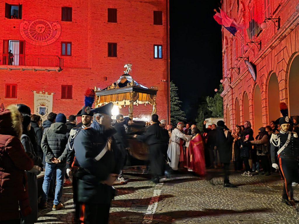 A rendere ancora più significativa la serata, è stata la presenza di mons. Gianpiero Palmieri, vescovo delle Diocesi del Piceno, che ha aperto la processione dall’altare della chiesa San Niccolò, accanto al nuovo parroco padre François Marie Kayij Ngoy e a don Vincent Ifeme, già parroco della comunità.