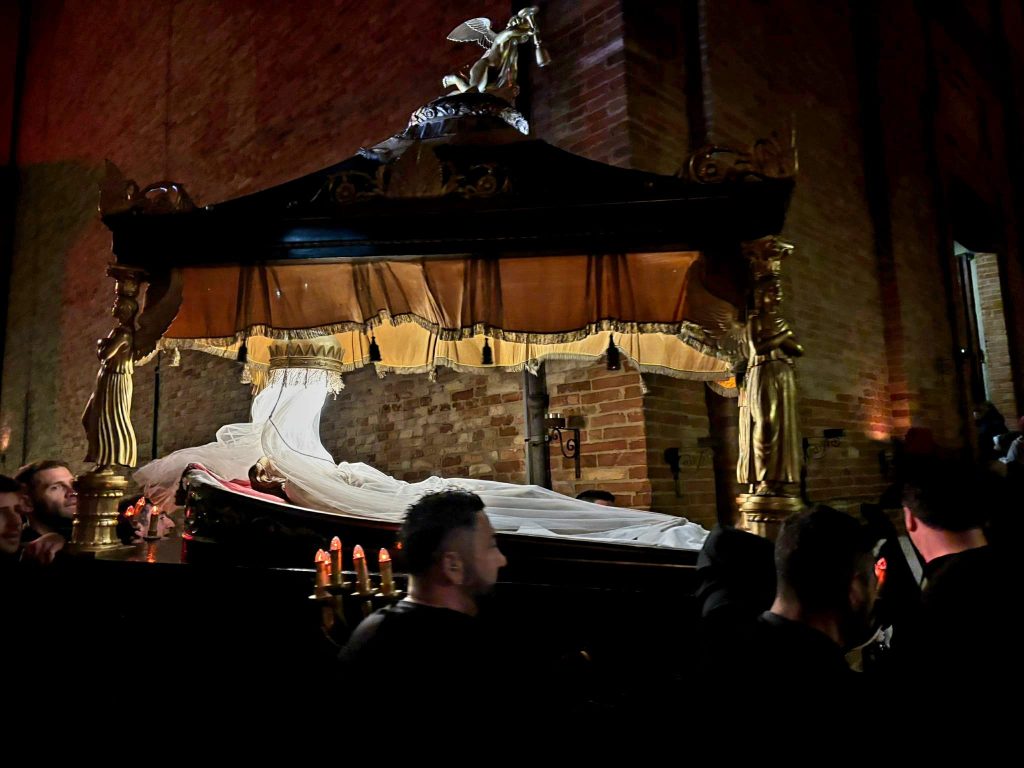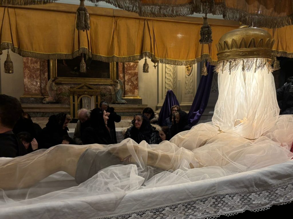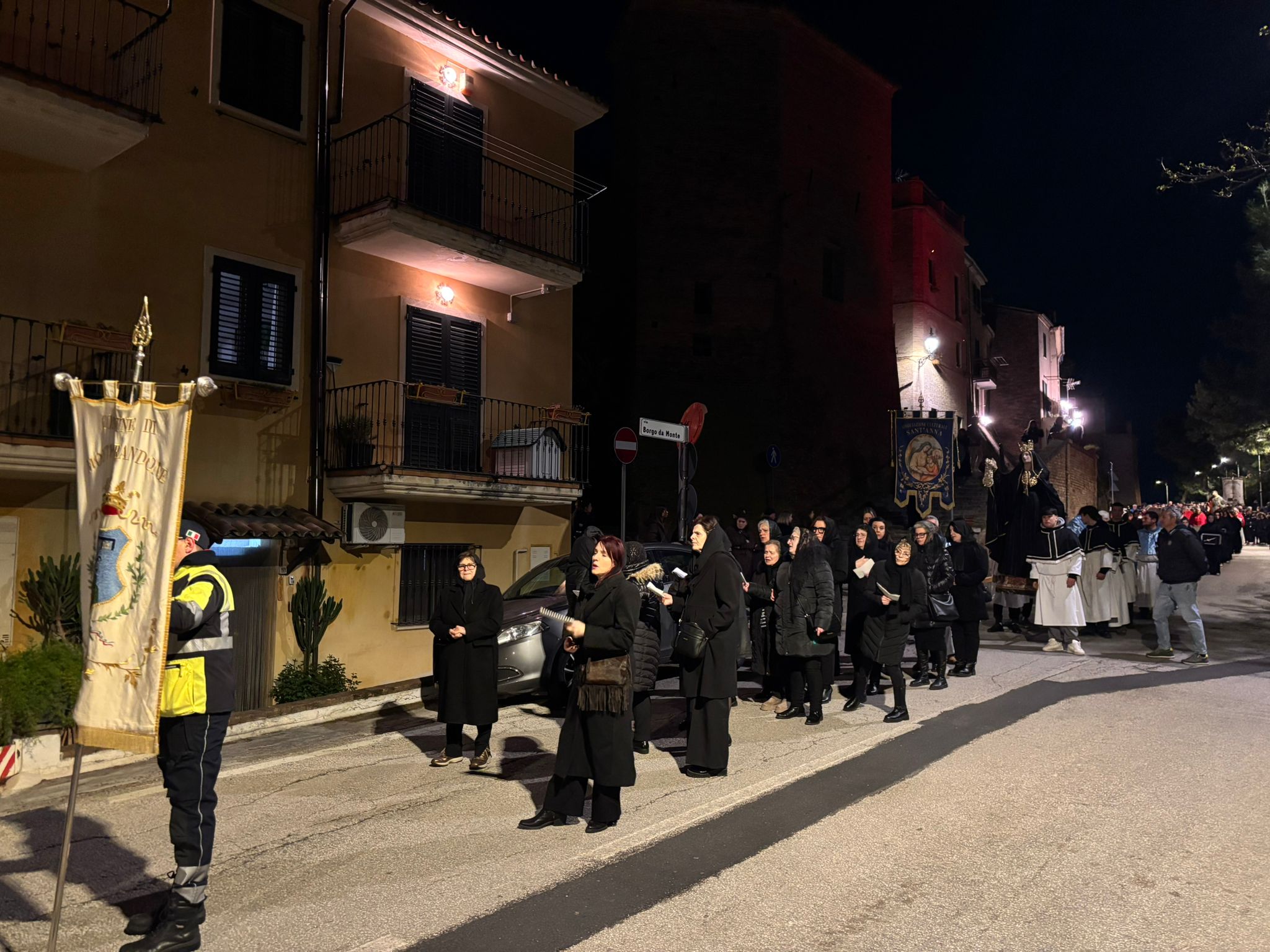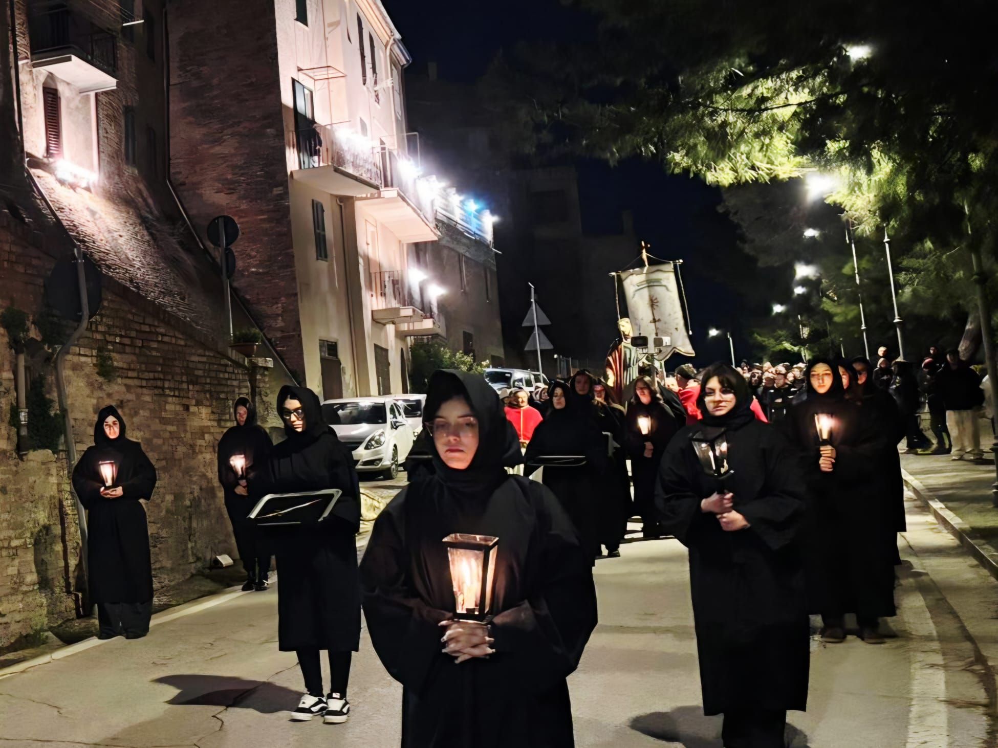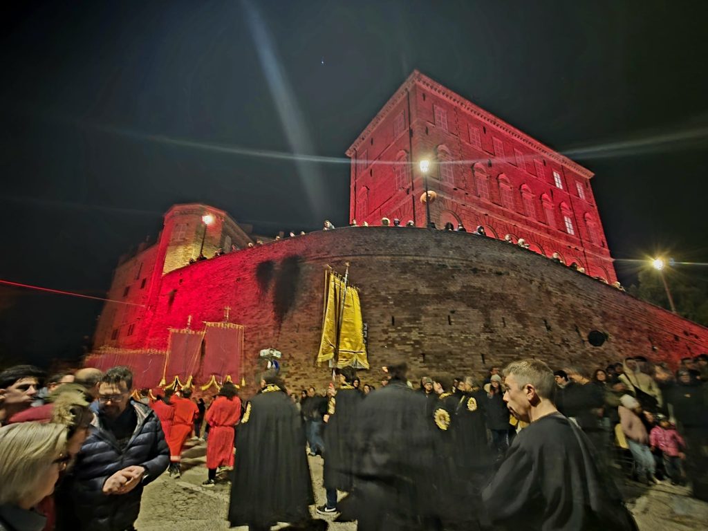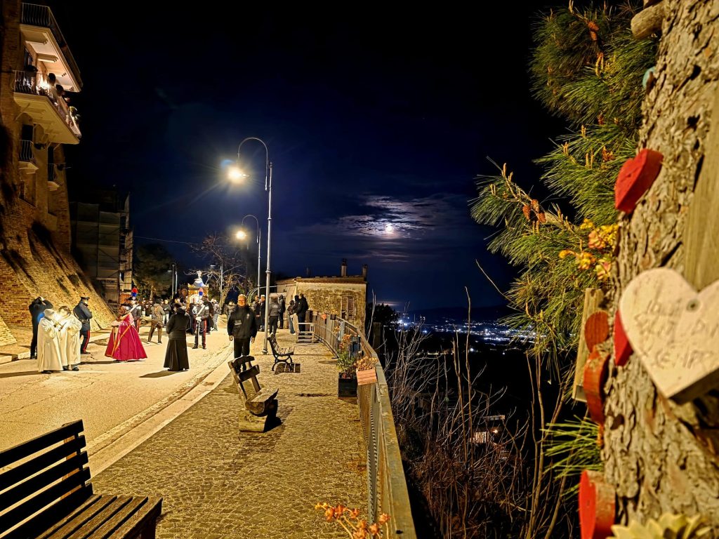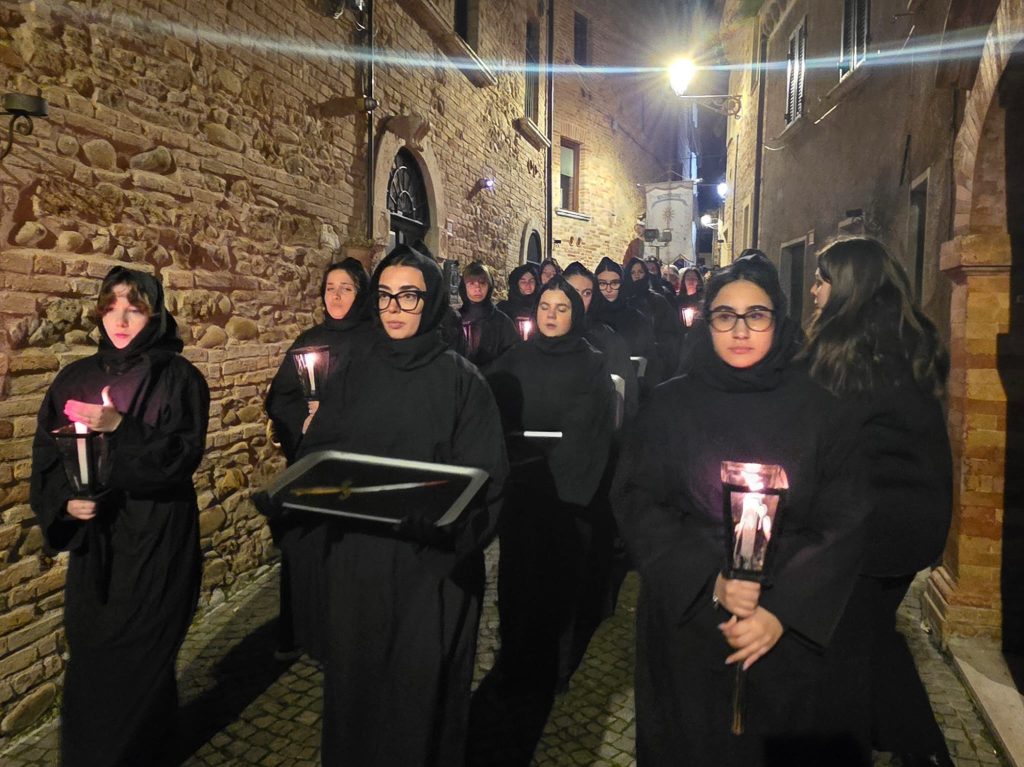 Il silenzio lungo le rue, le luci soffuse, le fiaccole lungo il percorso e i canti funebri tradizionali intonati dal Coro delle Pie Donne hanno creato un clima di intensa contemplazione. Il borgo medievale, con i suoi vicoli stretti e i panorami sulla vallata, è diventato il Golgota di 2000 anni fa, permettendo ai partecipanti di vivere un momento spirituale che ha fatto memoria della Passione e morte di Gesù.