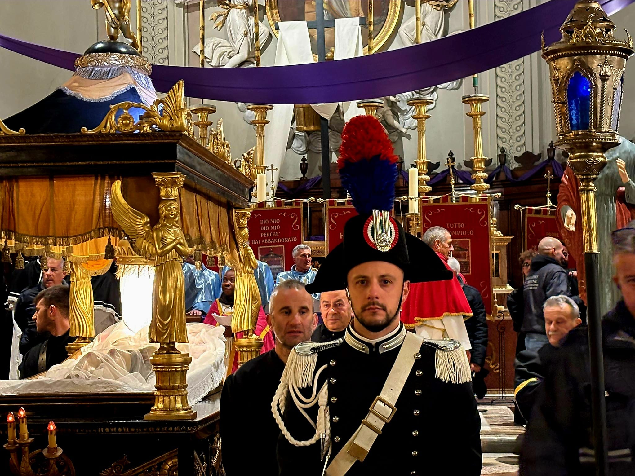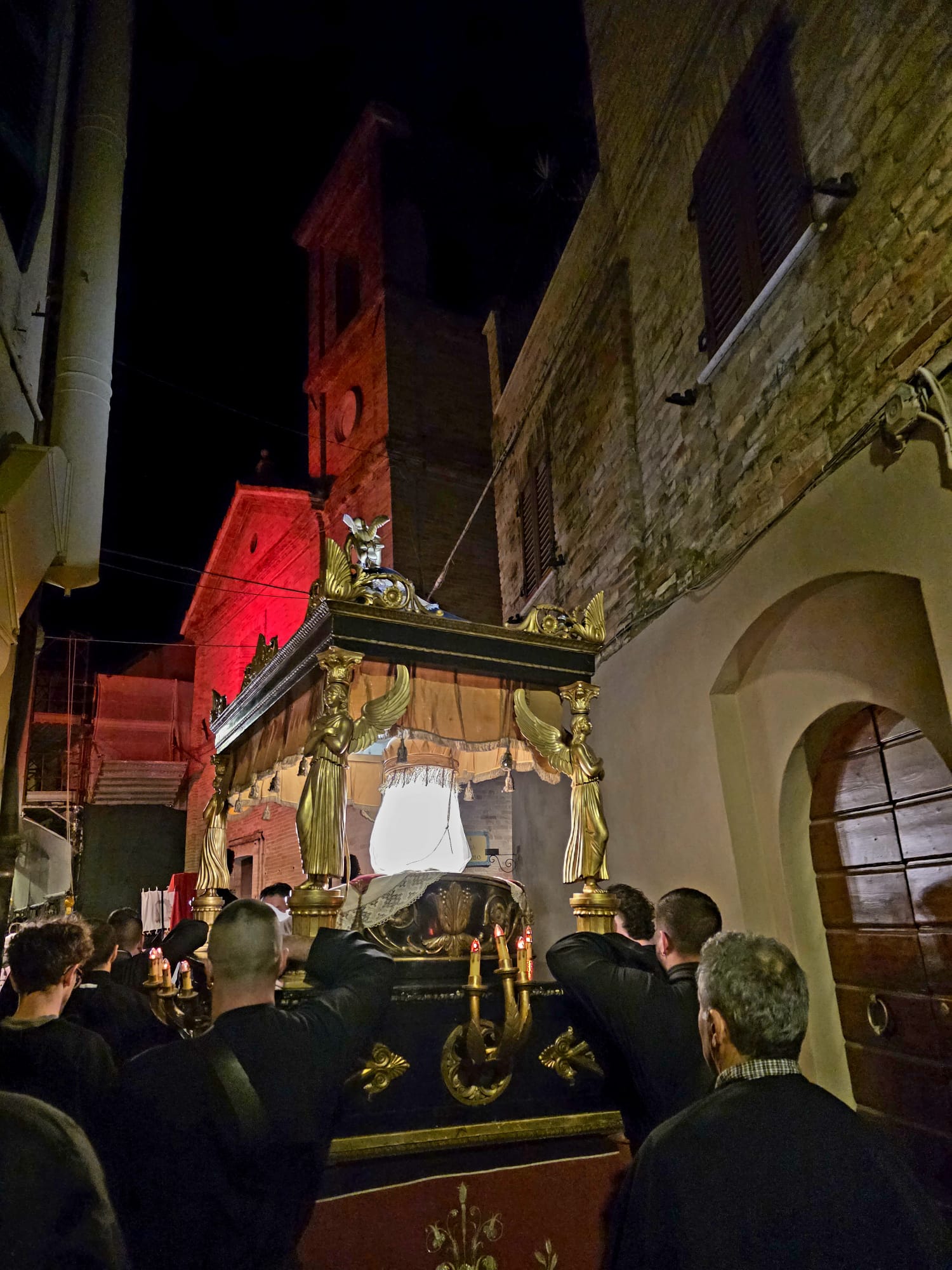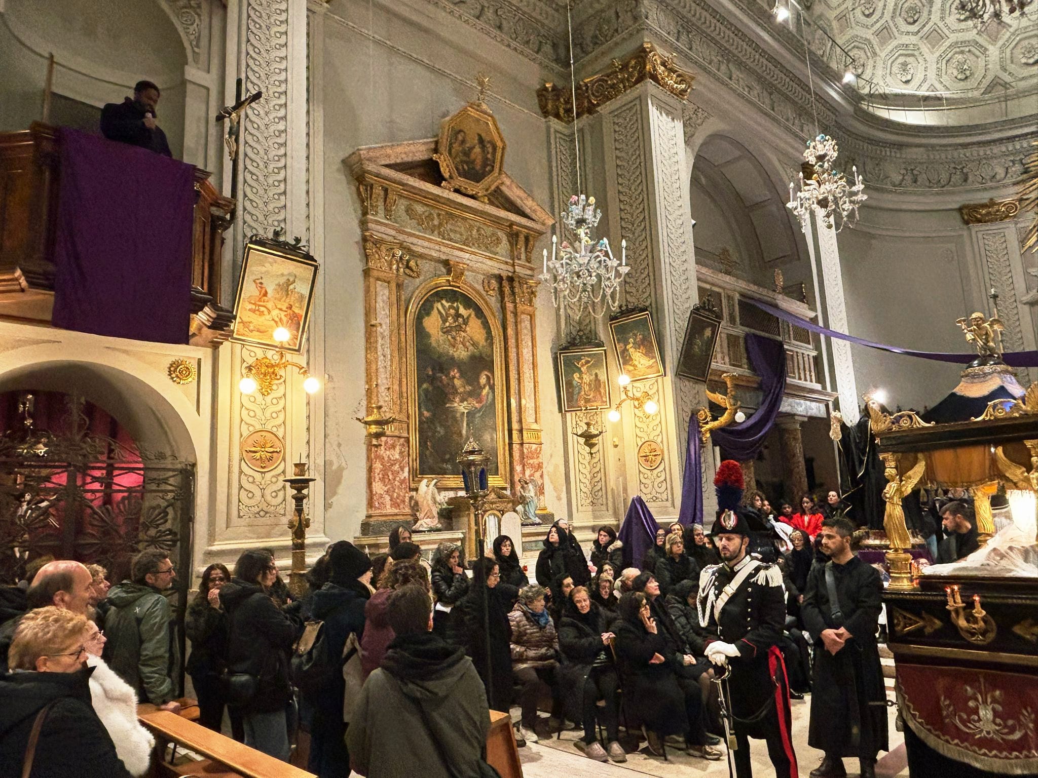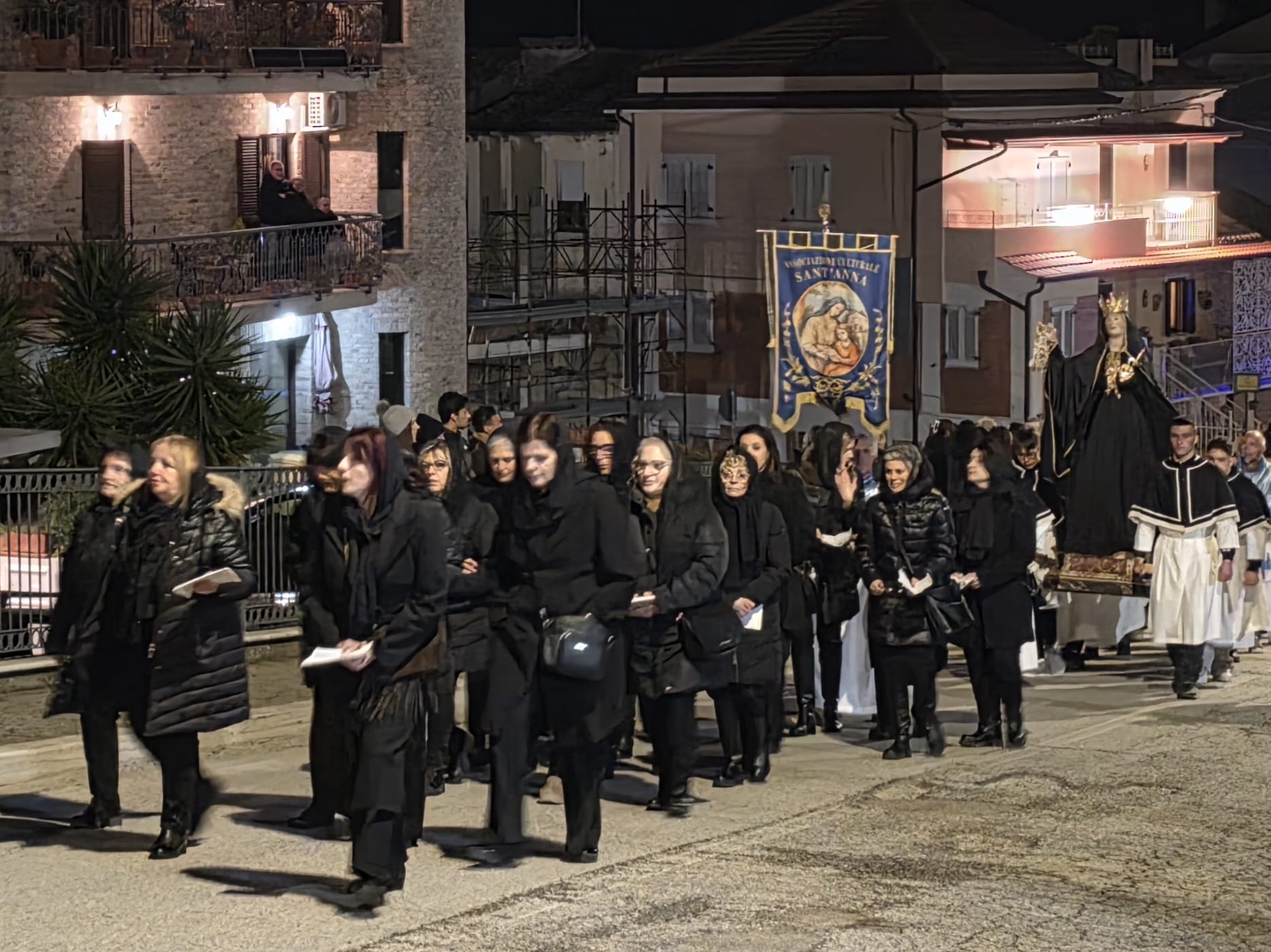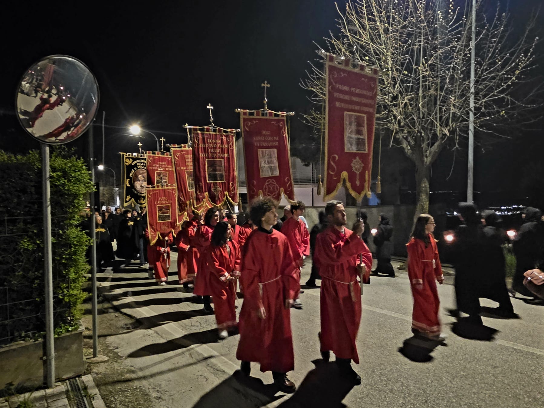 Il silenzio lungo le rue, le luci soffuse, le fiaccole lungo il percorso e i canti funebri tradizionali intonati dal Coro delle Pie Donne hanno creato un clima di intensa contemplazione. Il borgo medievale, con i suoi vicoli stretti e i panorami sulla vallata, è diventato il Golgota di 2000 anni fa, permettendo ai partecipanti di vivere un momento spirituale che ha fatto memoria della Passione e morte di Gesù.