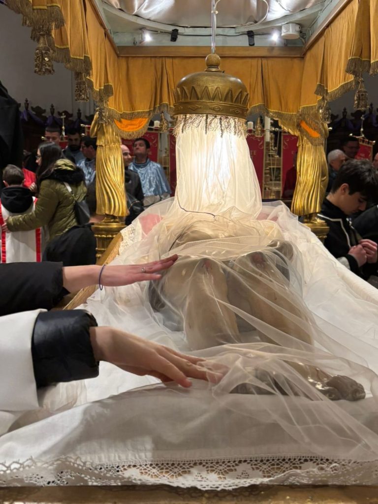 “La Processione del Cristo Morto rappresenta un collante culturale e spirituale fondamentale per Monteprandone. È un momento in cui la comunità si stringe attorno ai propri simboli religiosi, mantenendo vivo il legame con il passato e con la Passione e Morte di Gesù: non a caso, lungo il percorso, oltre alla statua del Cristo Morto, sono state portate in processione anche le statue della Madonna Addolorata e di San Giovanni, la madre e il discepolo amato che hanno accompagnato Gesù nel momento più doloroso della sua vita terrena, la croce.