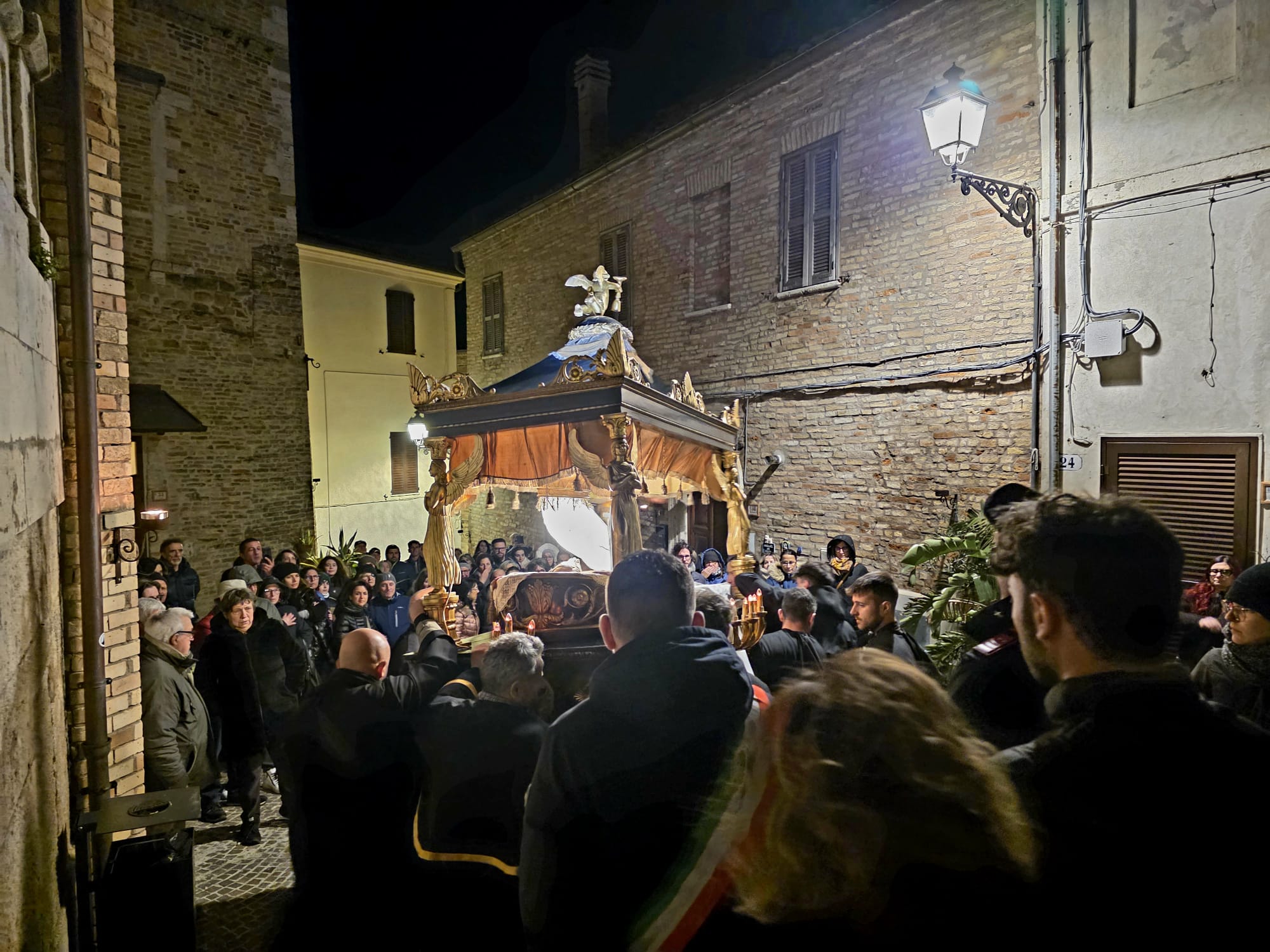 MONTEPRANDONE – Nel silenzio profondo del Venerdì Santo, ieri sera, 3 Aprile 2026, come da antica consuetudine, il borgo medioevale di Monteprandone si è trasformato in una scenografia naturale di incredibile impatto emotivo. La storica Processione del Cristo Morto, una tradizione che si rinnova ininterrottamente dal 1859, ha ripercorso le vie dell’incasato, unendo fede, storia e devozione popolare in un appuntamento che ha richiamato l’attenzione di migliaia di fedeli e visitatori.