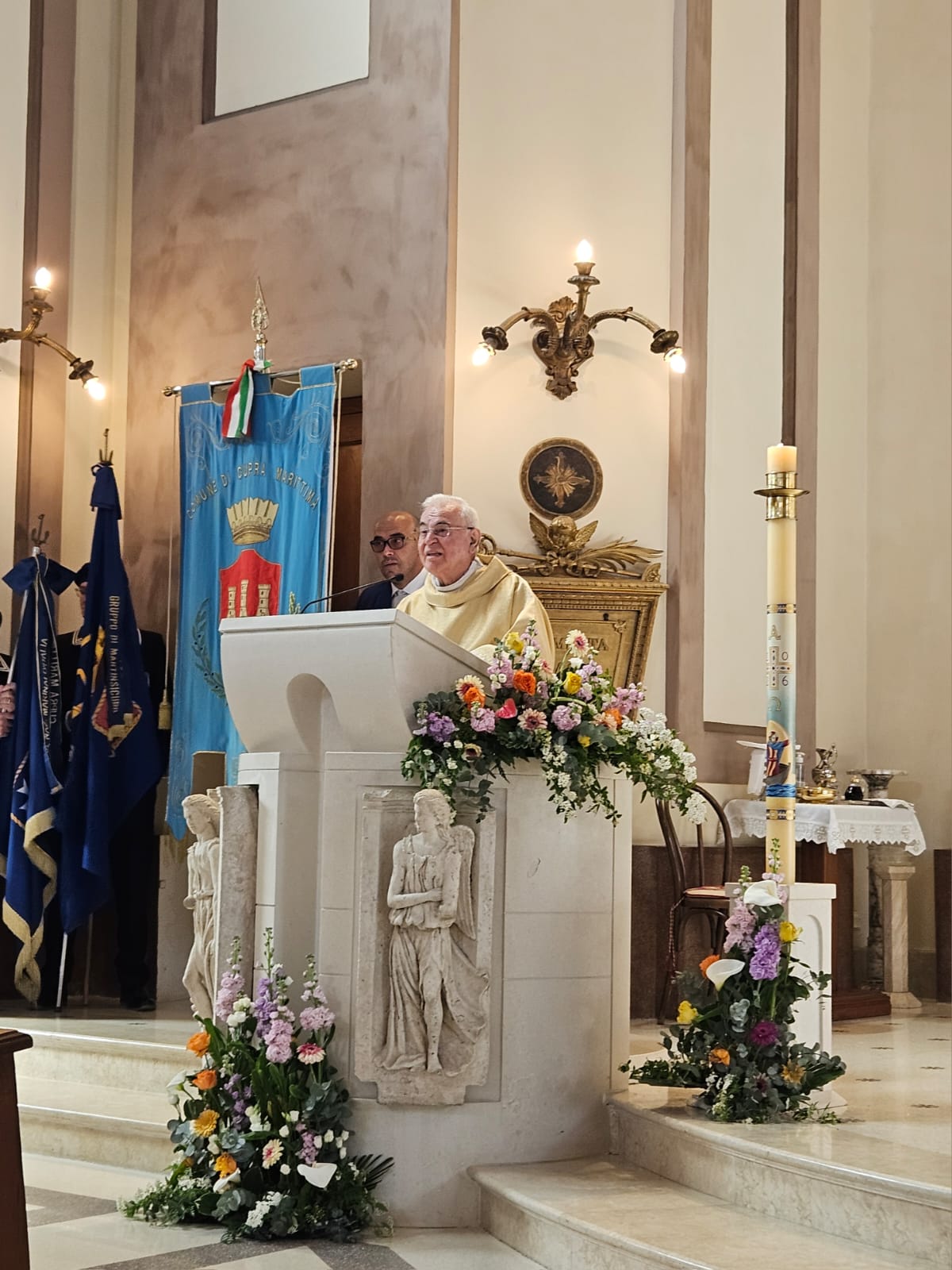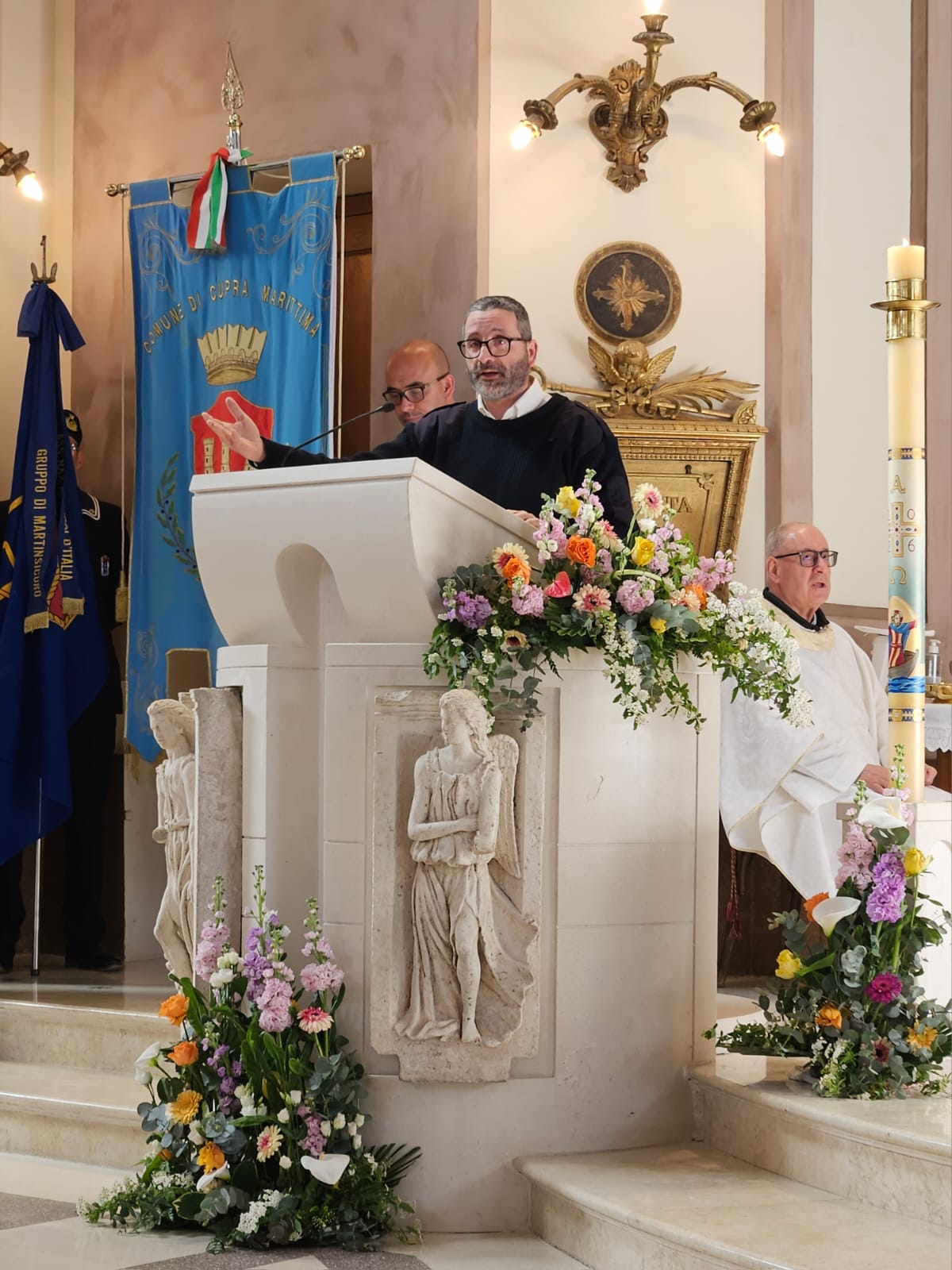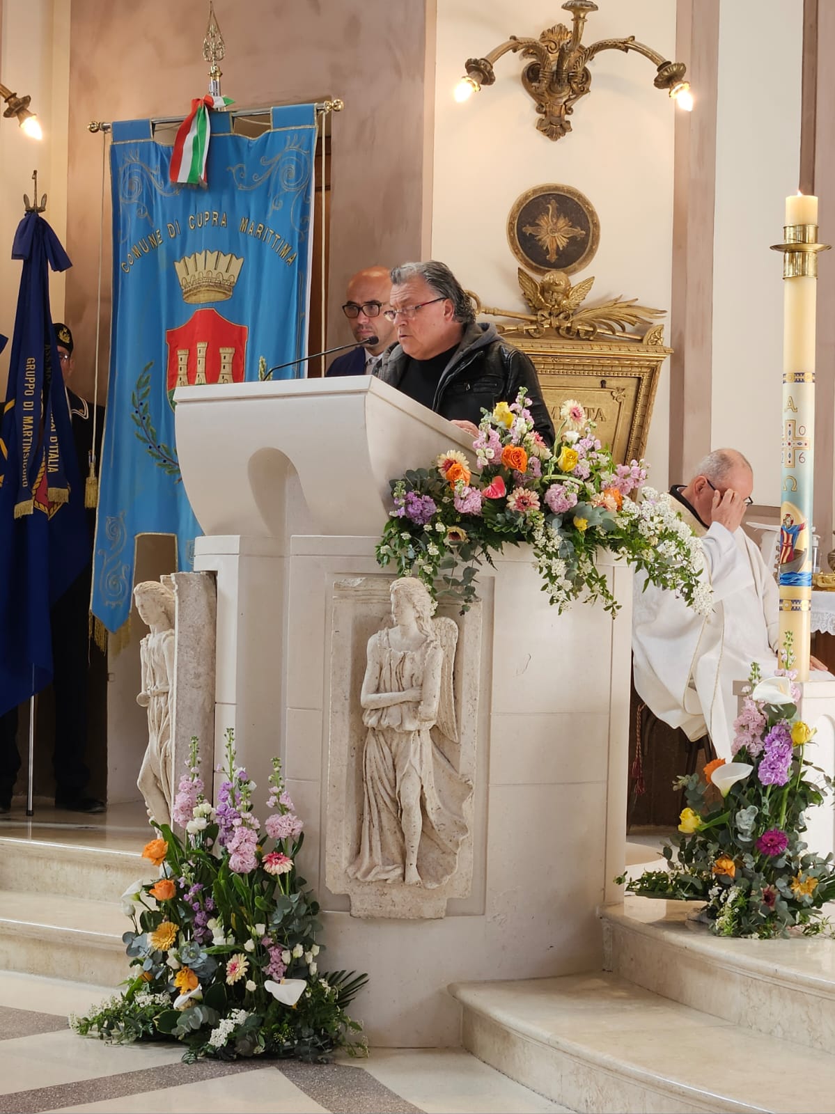 Presenti il parroco don Matteo Calvaresi, don Luigino Scarponi, don Francesco Bollettini, don Giuseppe Giudici, don Roberto Traini, i diaconi Luciano Caporossi ed Emanuele Imbrescia, il seminarista Simone Gaperi, le Confraternite cuprensi. Tra le autorità c’era il sindaco Alessio Piersimoni, gli esponenti dell’associazione “Marinai d’Italia” e dei Carabinieri e altri gruppi parrocchiali associativi, oltre al bravissimo coro.