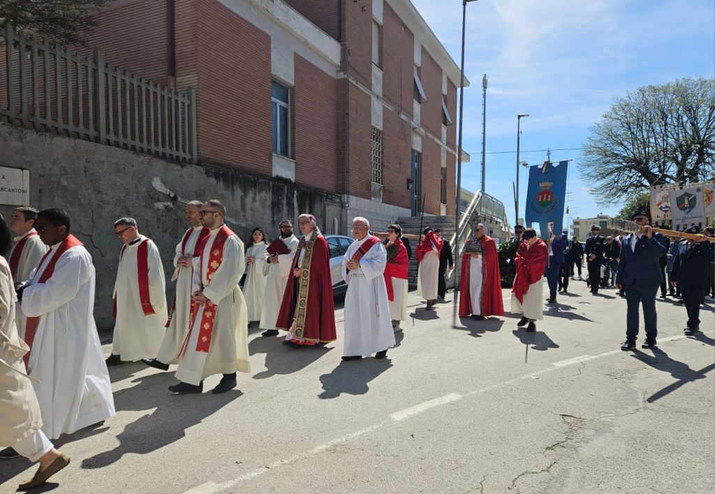 Al termine, prima della processione il parroco, don Matteo ha ringraziato il Vescovo Gianpiero che «…con la sua presenza ci fa sentire la vicinanza di Gesù». Ha ricordato di andare a vedere il film girato tra Ancona e Cupra Marittima: “Lo chiamava Rock & Roll” del 2026, diretto da Saverio Smeriglio, con 300 comparse di Cupra Marittima, che racconta il tema dell’inclusione e della disabilità, come pure della rinascita, ispirata a fatti reali. Il film è sostenuto dall’ANMIL – l’Associazione Nazionale fra Lavoratori Mutilati e Invalidi del Lavoro – ottenendo riconoscimenti internazionali come lo SFIFF di San Francisco. Si terrà la prima proiezione al Teatro delle Energie mercoledì 8 aprile alle 17,30 e alle 21. Nella proiezione del 9 (18,30 e 21,15) sarà presente il Vescovo Gianpiero per commentare il tema trattato.