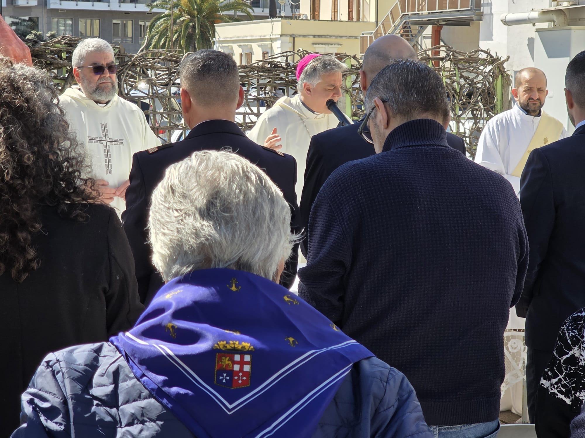 Un passaggio significativo ha riguardato la presenza di Dio nella vita quotidiana, soprattutto per chi vive del mare: “Il mare è già benedetto da Dio fin dall’inizio, ma noi chiediamo di saper cogliere la sua presenza nella nostra vita. Anche quando è tempestoso, anche quando custodisce i nostri morti, sappiamo che tutti vivono in Dio”.