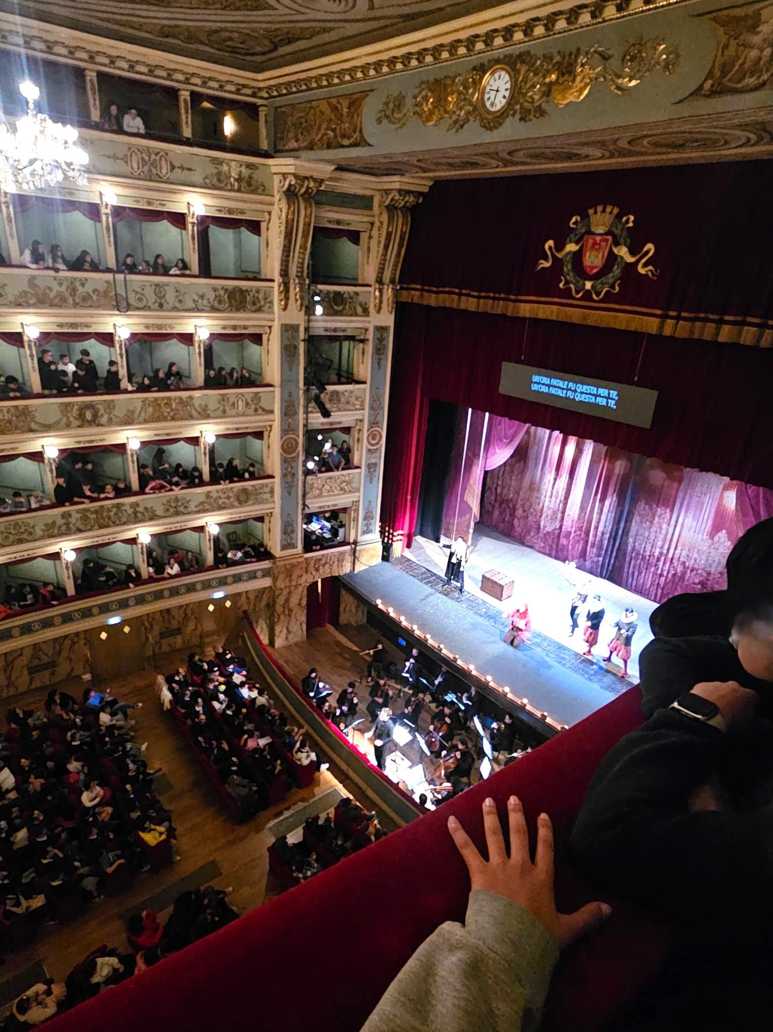 Alunni di Grottammare in..trasferta ad Ascoli per assistere, anzi: partecipare a un’opera lirica. Il 9 aprile tutte le quinte classi della scuola primaria e le sette seconde della scuola secondaria di I grado dell’Istituto Scolastico “Giacomo Leopardi” di Grottammare si sono recate, la primaria in treno, la secondaria in pullman, alla volta di Ascoli Piceno, dove, nello splendido e artistico teatro “Ventidio Basso”, li attendeva un’opera lirica o, meglio: brani scelti del Rigoletto di Verdi.