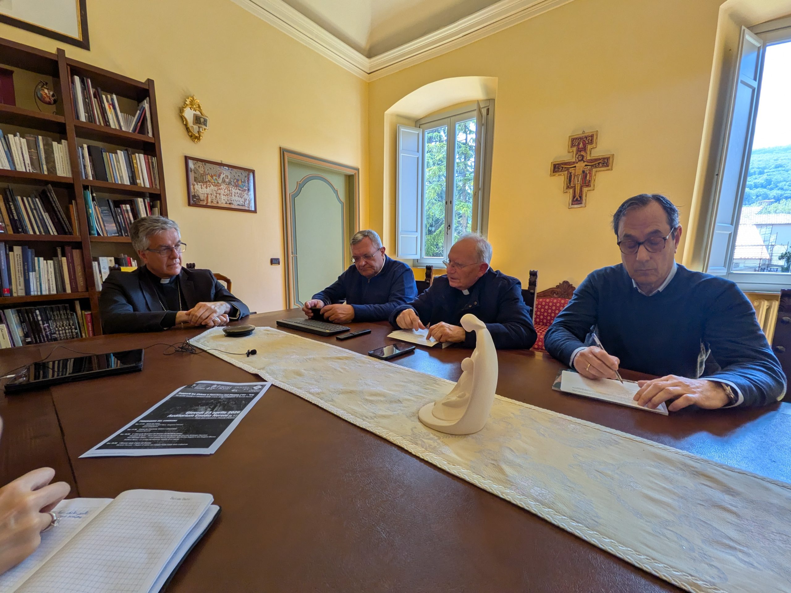 Alla conferenza stampa erano presenti il vescovo Gianpiero Palmieri, don Vincenzo Catani, l’architetto Michele Picciolo e il dottor Giuseppe Di Bello, che interverranno come relatori insieme alla professoressa Barbara Rucci e al professor Andrea Riccardi.