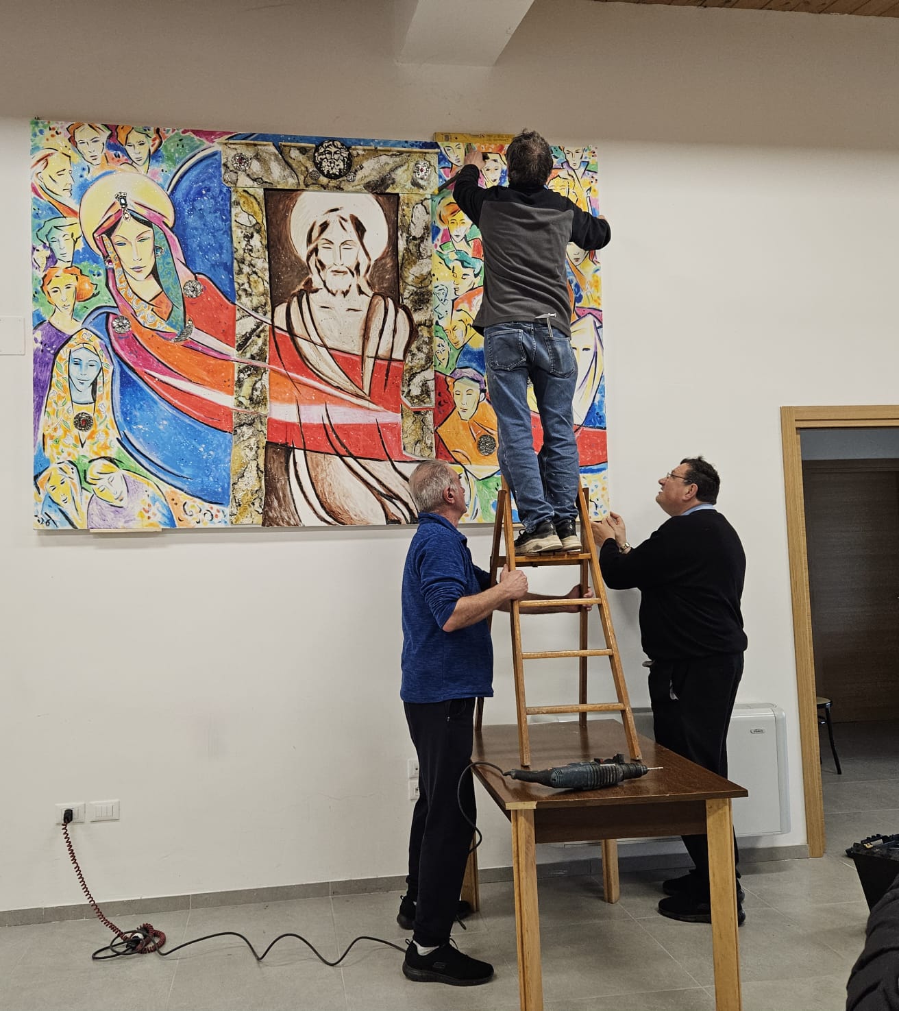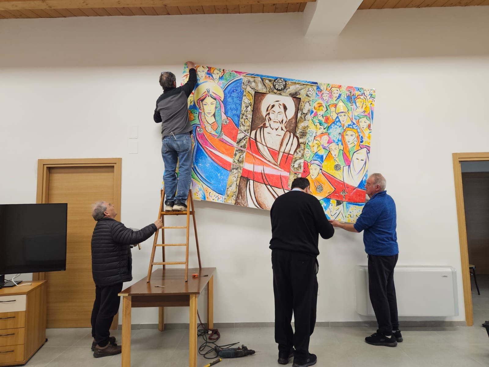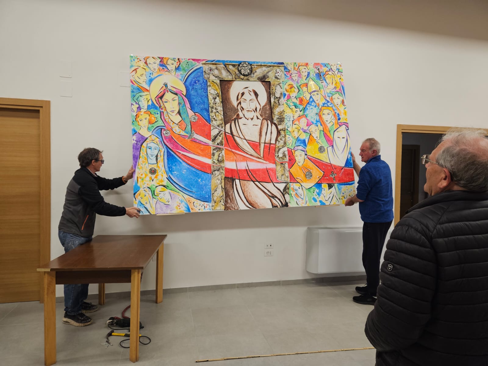 Lo stesso parroco ha voluto collocare il dipinto nella Sala della Comunità di Cossignano, dove molto spesso si tengono riunioni dei vari gruppi della Parrocchia dell’Assunta, cosicché esso possa essere occasione di contemplazione e spunto di riflessione per i dibattiti e gli incontri. L’opera verrà traslata una volta l’anno, in occasione del Venerdì Santo. “Costituirà la quattordicesima stazione della Via Crucis vivente – ha spiegato don Claudio Capecci. “È il Sepolcro di Nostro Signore. Dopo Pasqua verrà riportato qui, nella Sala della Comunità, come ha voluto il parroco, mons. Federico”.
