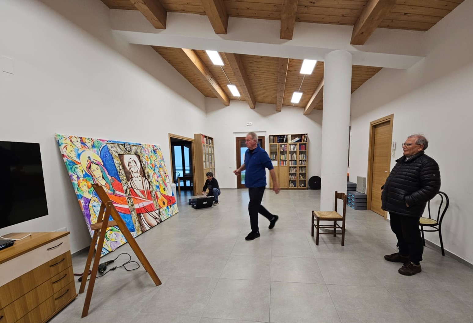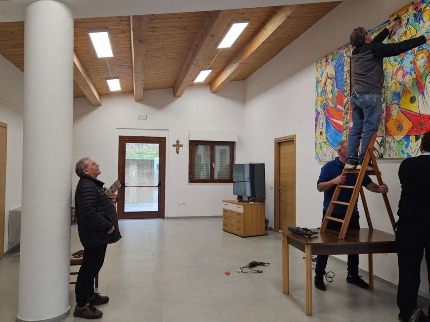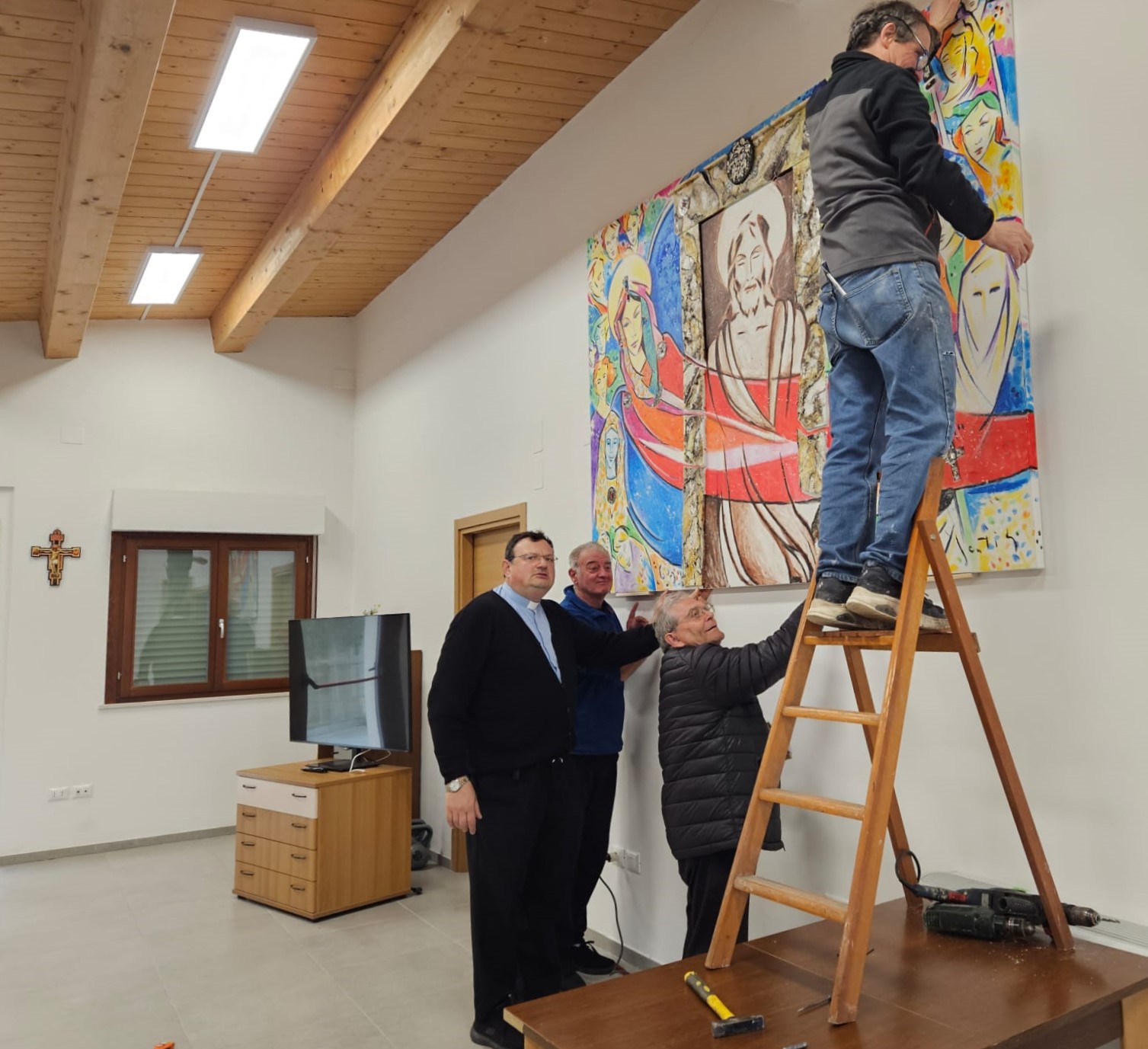 Lo stesso parroco ha voluto collocare il dipinto nella Sala della Comunità di Cossignano, dove molto spesso si tengono riunioni dei vari gruppi della Parrocchia dell’Assunta, cosicché esso possa essere occasione di contemplazione e spunto di riflessione per i dibattiti e gli incontri. L’opera verrà traslata una volta l’anno, in occasione del Venerdì Santo. “Costituirà la quattordicesima stazione della Via Crucis vivente – ha spiegato don Claudio Capecci. “È il Sepolcro di Nostro Signore. Dopo Pasqua verrà riportato qui, nella Sala della Comunità, come ha voluto il parroco, mons. Federico”.