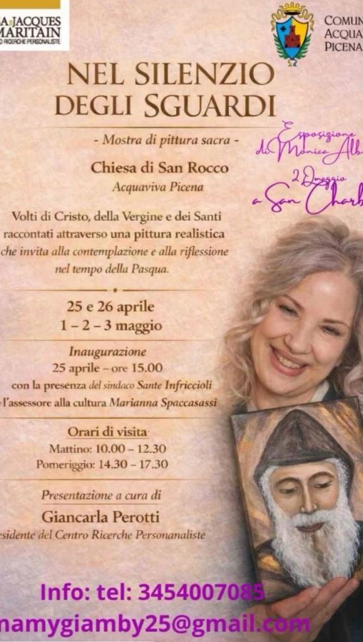 MONTEPRANDONE – Monica Alberti è una pittrice nata a Roma, ma residente a Monteprandone, che da qualche tempo ha scoperto la passione per la pittura e ora, attraverso le sue opere, vuole far conoscere la figura di san Charbel, alla quale è molto devota.
