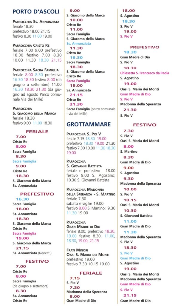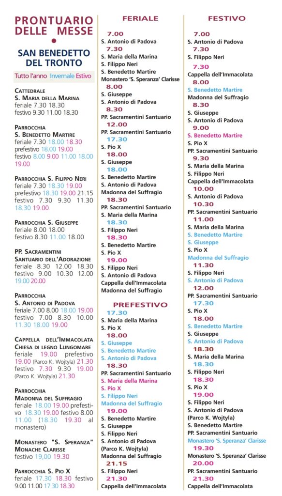 Orario Sante Messe a San Benedetto del Tronto – Porto D’Ascoli – Grottammare