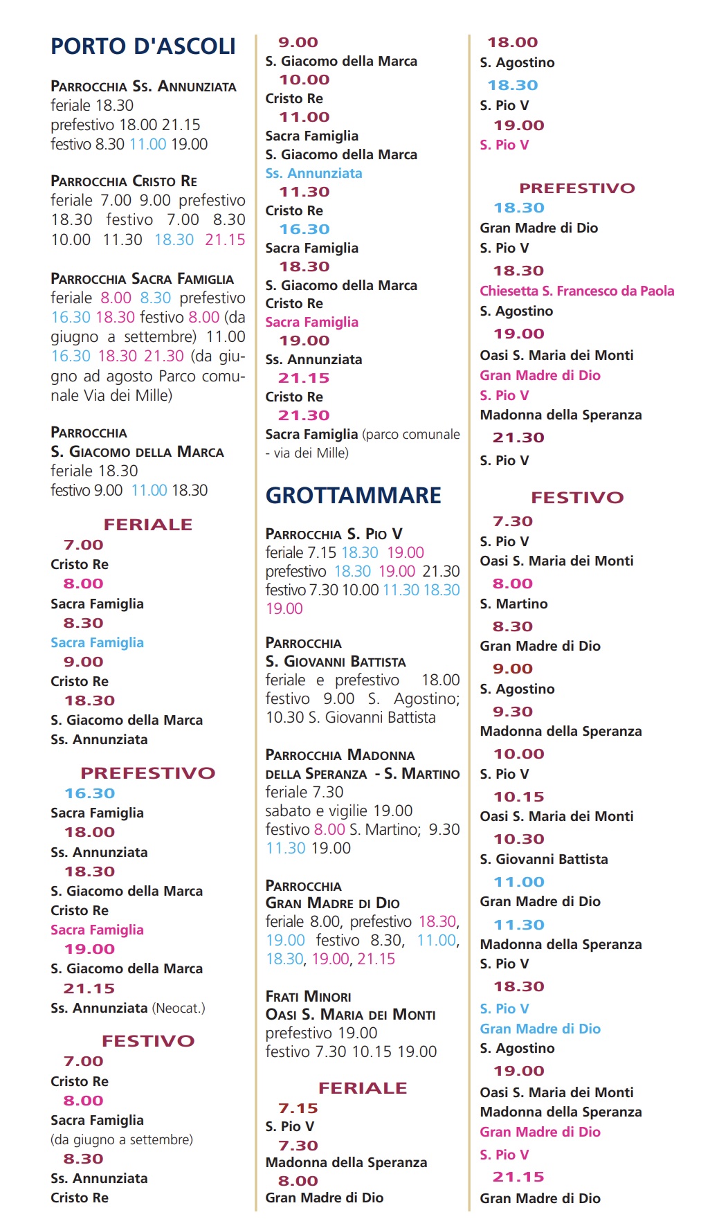 Orario Sante Messe a San Benedetto del Tronto – Porto D’Ascoli – Grottammare
