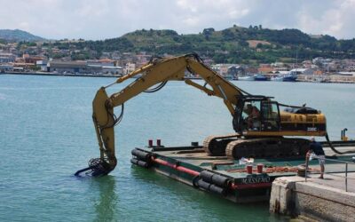 San Benedetto: La “sorbona” e il pontone “Massimo” al lavoro al porto